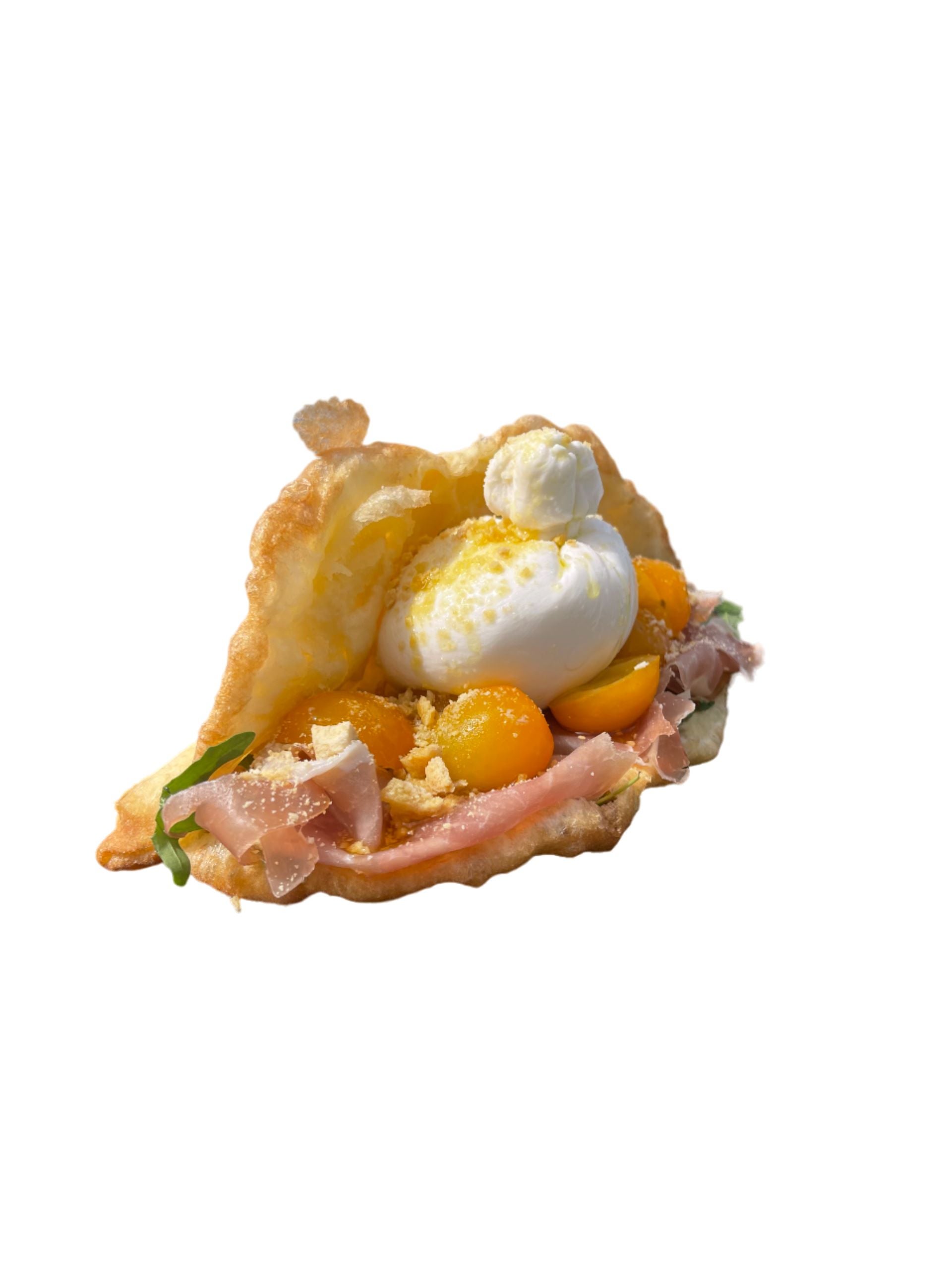 Gambero aromatizzato, mozzarella fior di latte, crema di pistacchio, capocollo croccante e zeste di limone€7.00Norcina