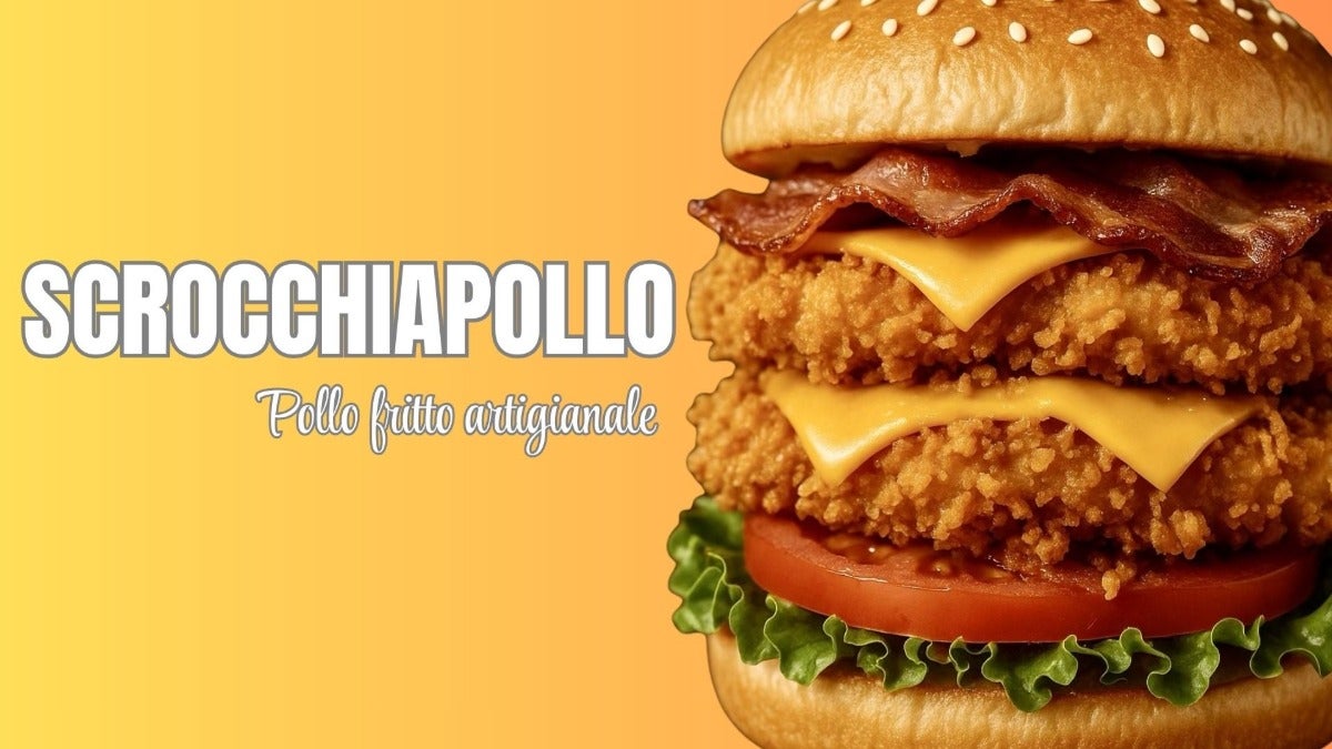 Cotoletta di petto di pollo toscano, panatura extracroccante, panino al sesamo, insalata, pomodoro, bacon, salsa Supereasy€8.80PopularLO SCROCCHIADOPPIO