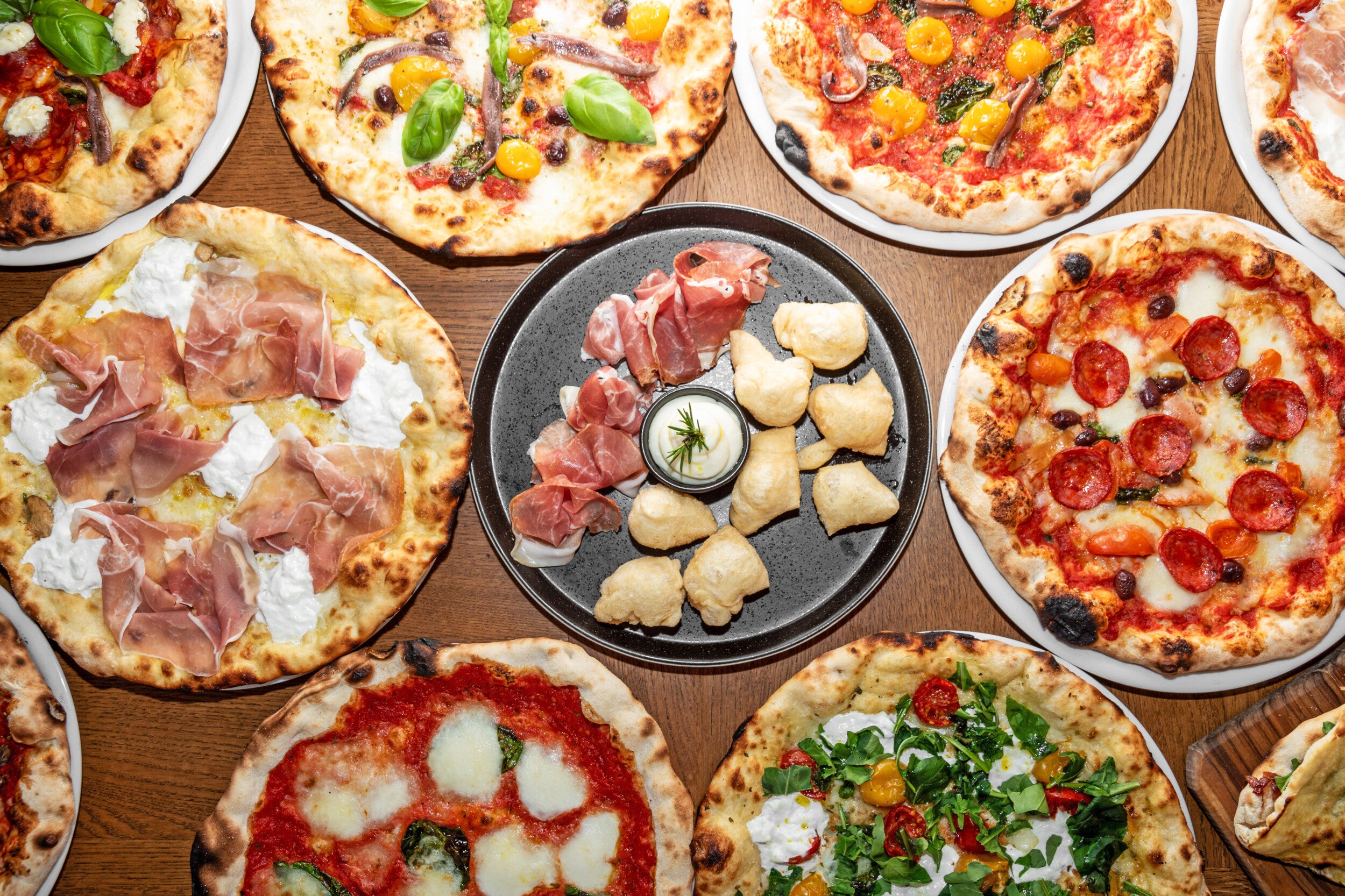 Pomodoro, mozzarella fiordilatte, cipolla di Tropea, gorgonzola DOP, guancia di grigio del casentino e pecorino di fossa€15.00Parma e burrata DOC
