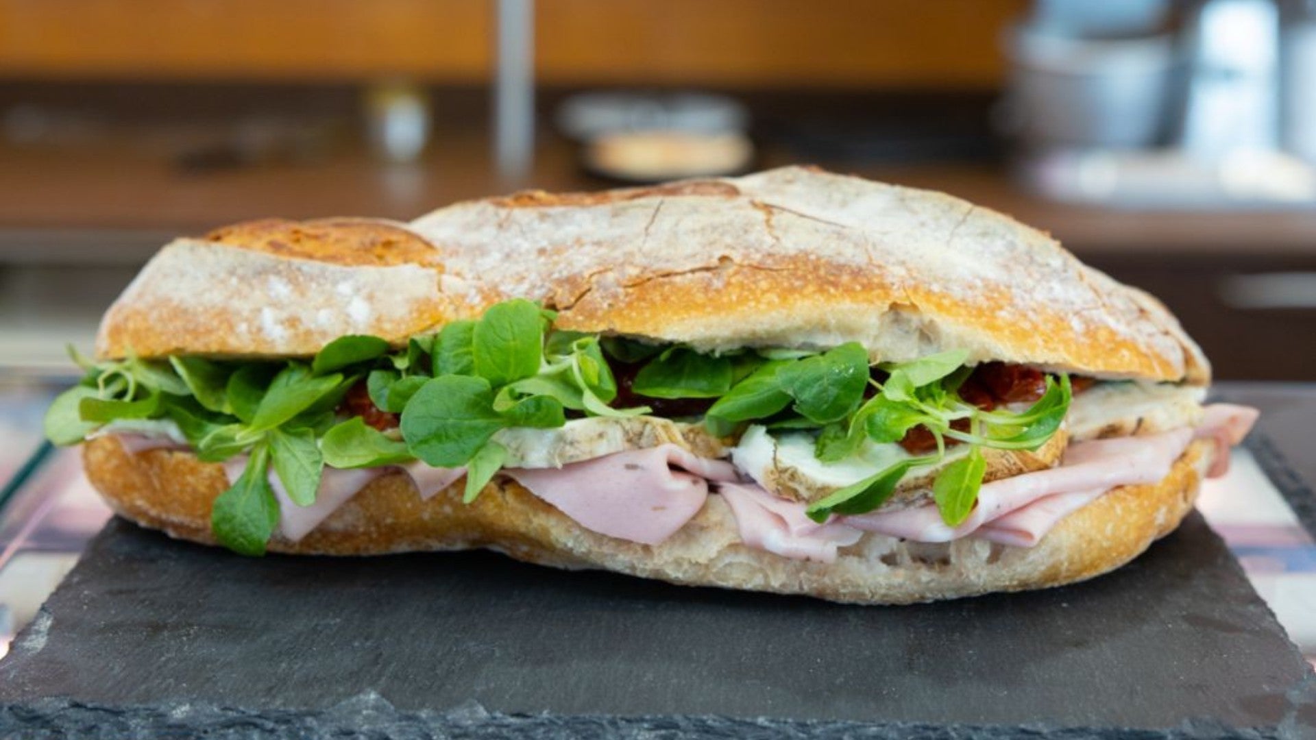 Panino da 150 gr con prosciutto crudo San Daniele riserva 24 mesi, stracciatella, pomodori secchi sott'olio€8.50Pistacchio Goloso