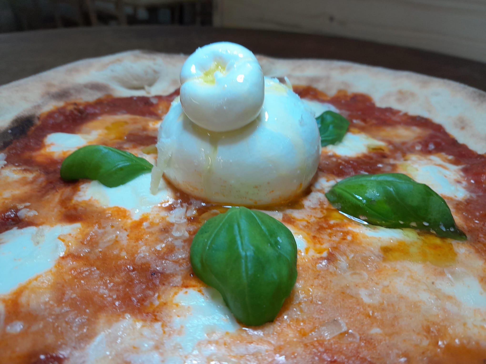 Mozzarella fiordilatte, polpa di pomodoro casereccio, mortadella IGP, basilico a km 0 bio, burrata fresca, stracciatella fresca, crema di pistacchio e un filo d'olio extravergine d'oliva€10.00Aprile