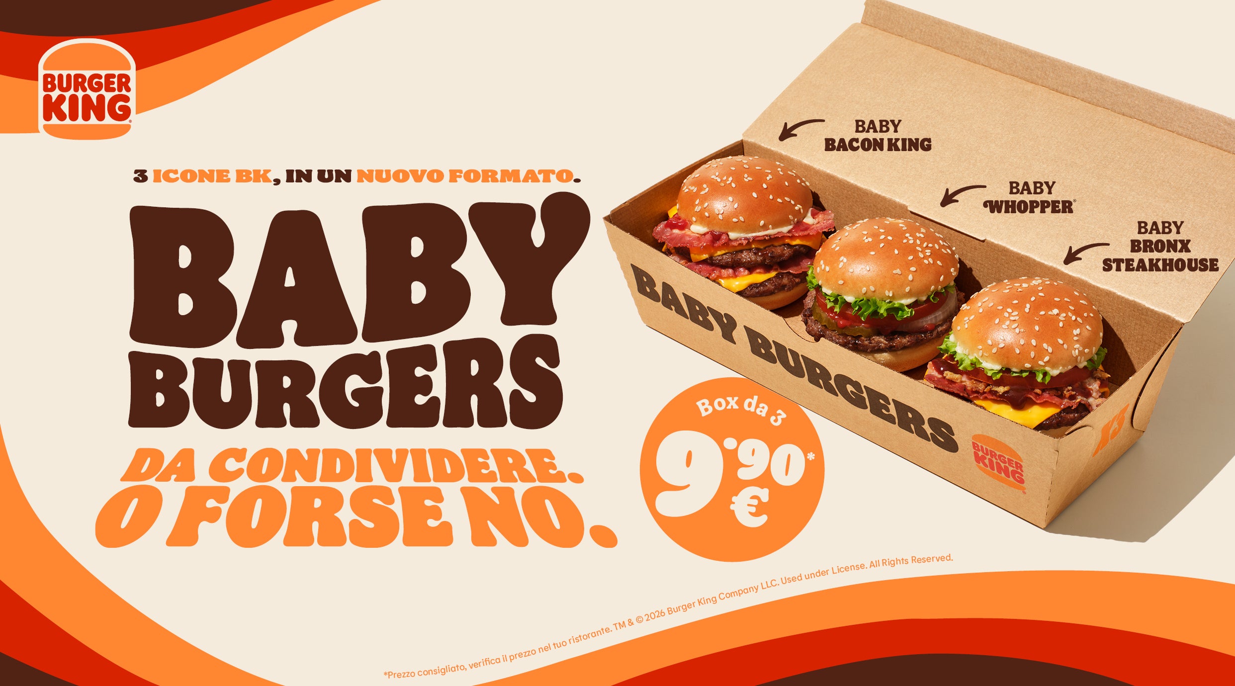 Siamo arrivati, BABY. Prova la nostra nuova box con tre icone di Burger King in formato mini ma con lo stesso carattere da King: Baby Bacon King, Baby Whopper e Baby Bronx Steakhouse. Piccoli fuori, ricchi di gusto dentro e perfetti per essere condivisi (o forse no).€16.40PopularChicken Krispper - menù