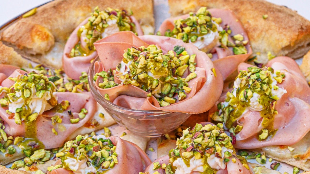 Highly rated· Mozzarella fiordilatte pugliese, mortadella Levoni Oro al pistacchio, fiocchi di ricotta pugliese,granella e crema di pistacchio€14.00TARTUFINA