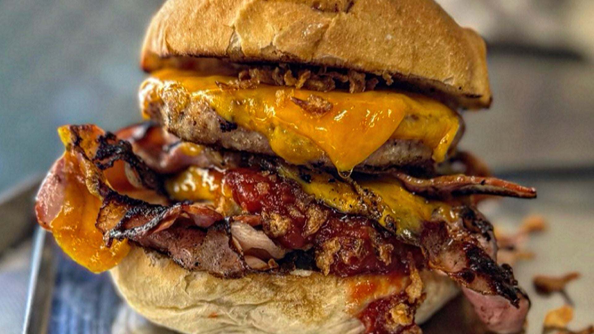 CotolettaPollo, Bacon x2, Crocchette di patate, cipolla Crispy, formaggio Cheddarx2, Salsa BBQ€15.00Burger 2