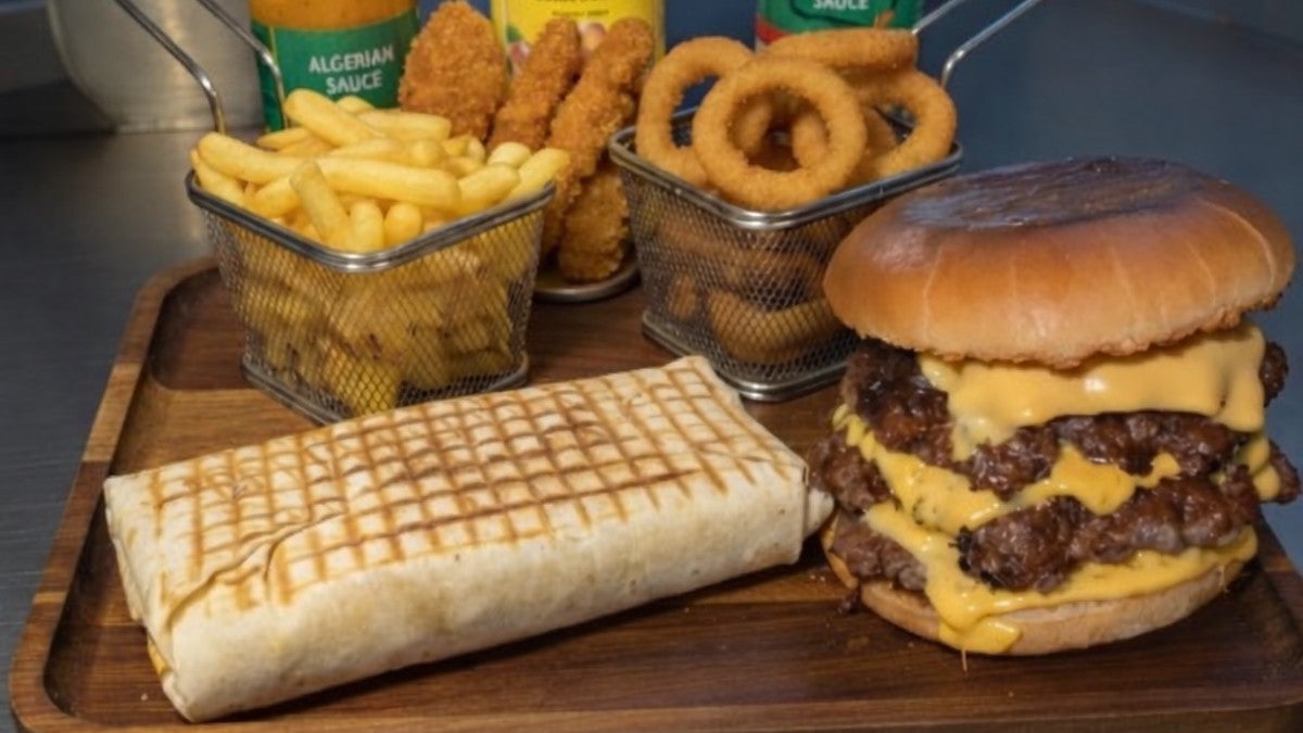 Ingredienti: Tacos con 1 carne - Carne di pollo (kebab), piadina, crema di formaggio, maionese, salsa algerina€7.00HalalBurger