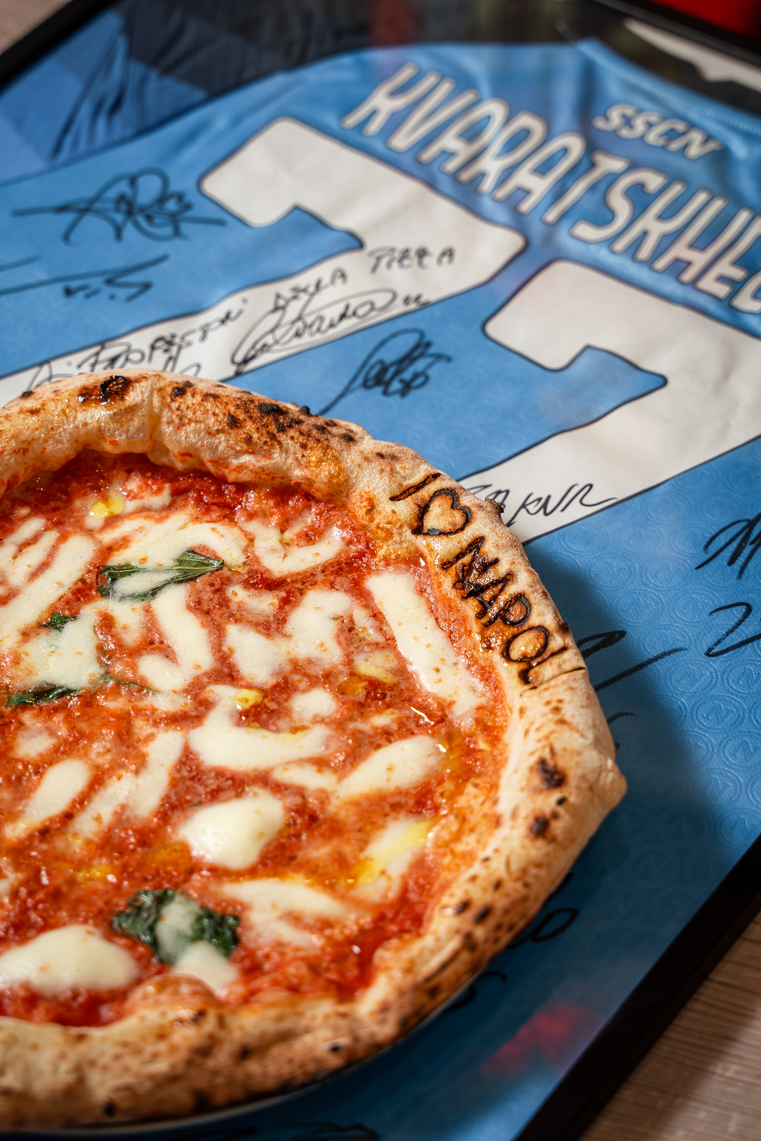 Provola di Agerola affumicata in paglia, würstel, patate stick e basilico fresco.€9.00Napoletano