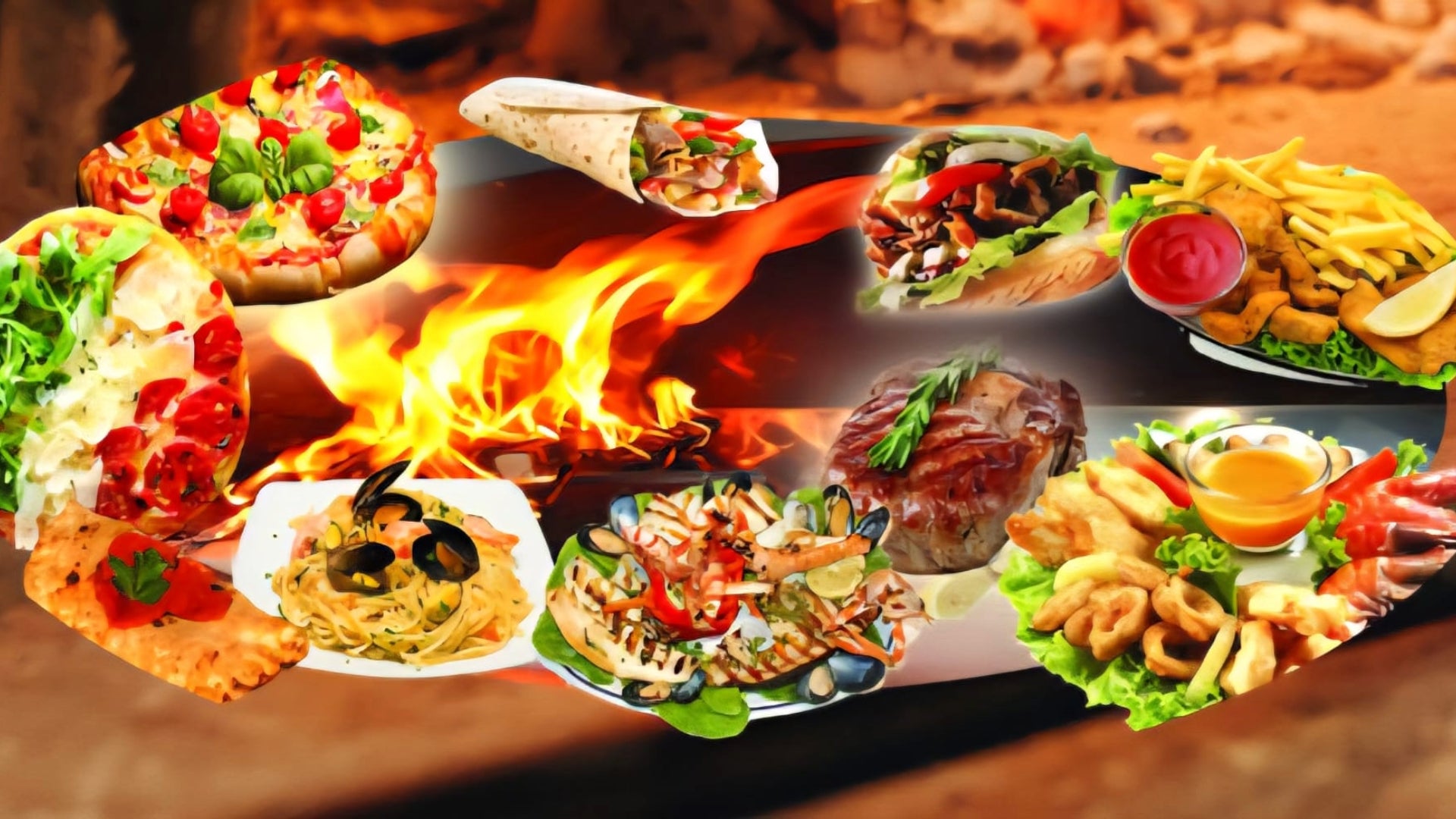 alette di pollo, patatine e bibita€9.00piatto fantasia e kebab wuster