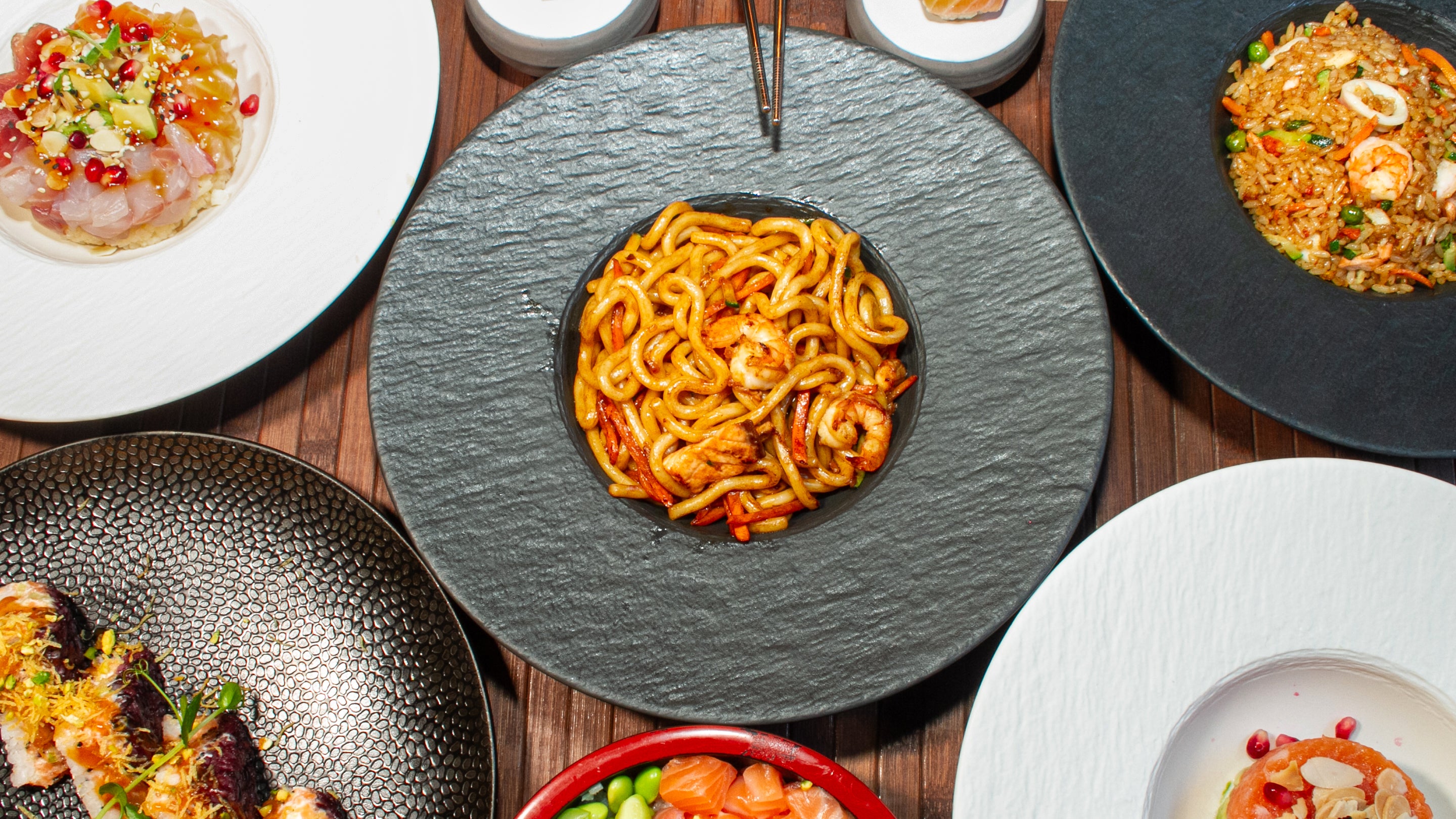 Branzino, gamberi, salmone, polipo e seppioline con pomodorini allo yuzu€15.00Kisen
