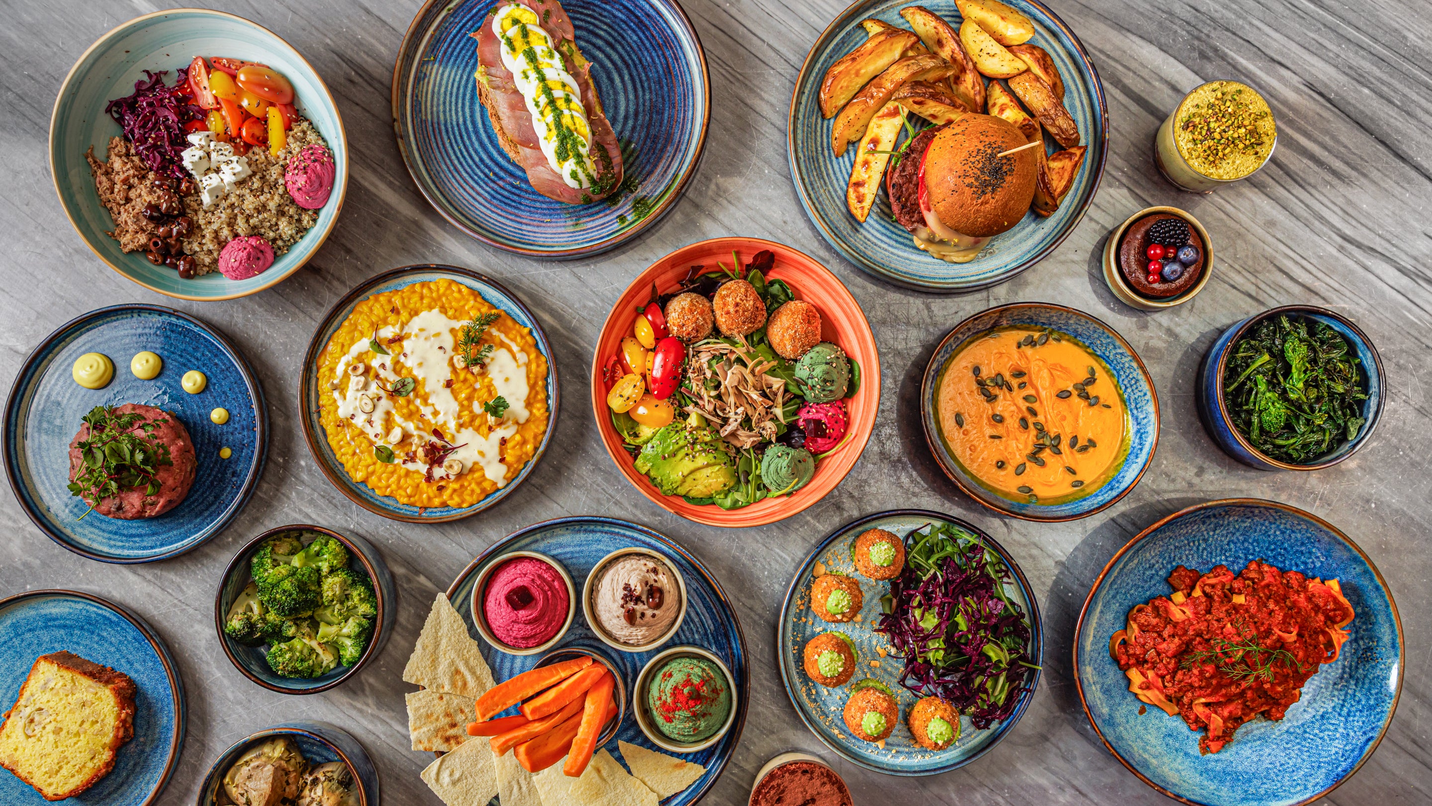 Servita con avocado, more e mayo vegana agli agrumi€19.00Tris di hummus