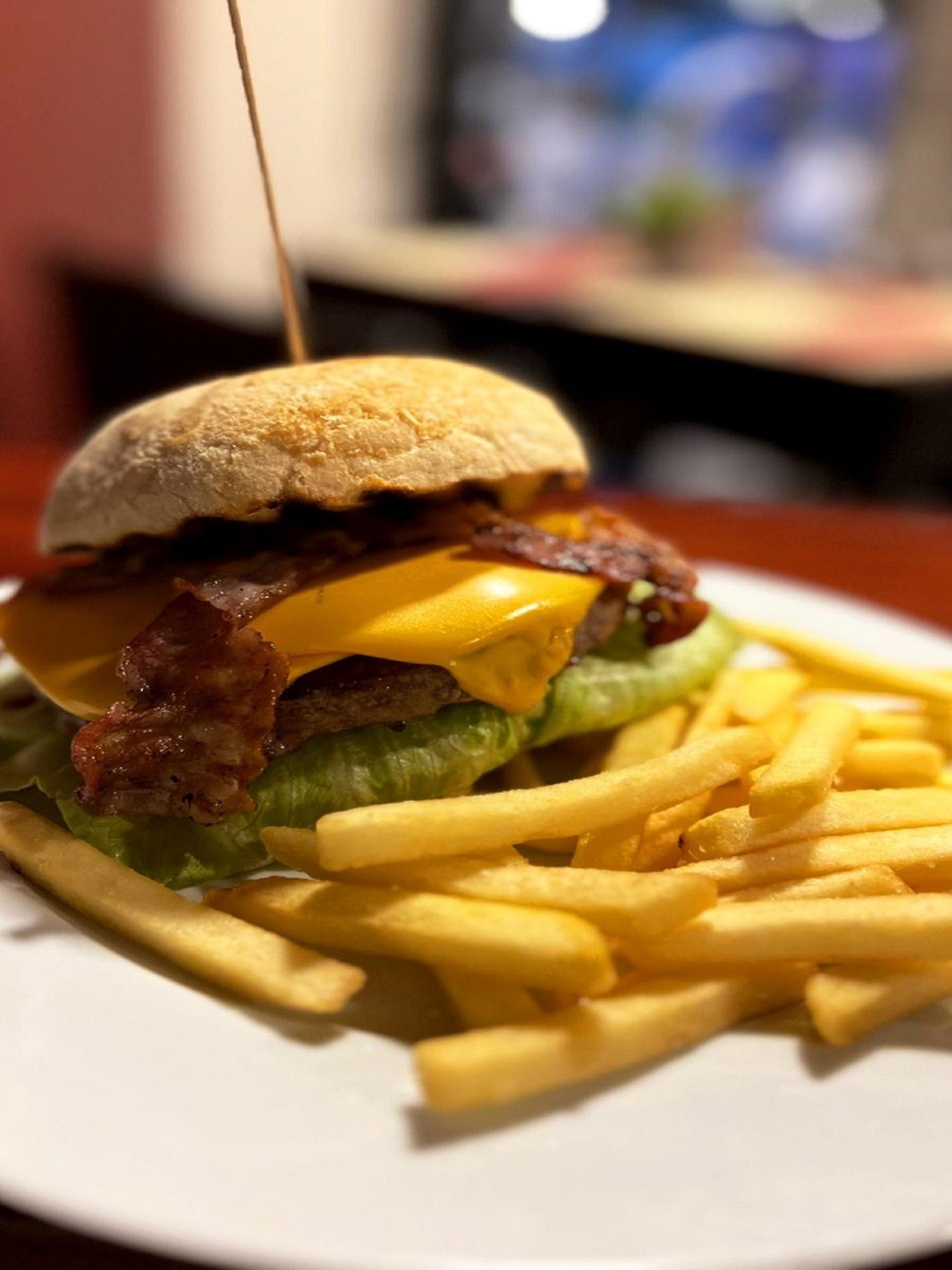 Hamburger di manzo 150g, cheddar, insalata verde, pomodoro, bacon€10.00Francese