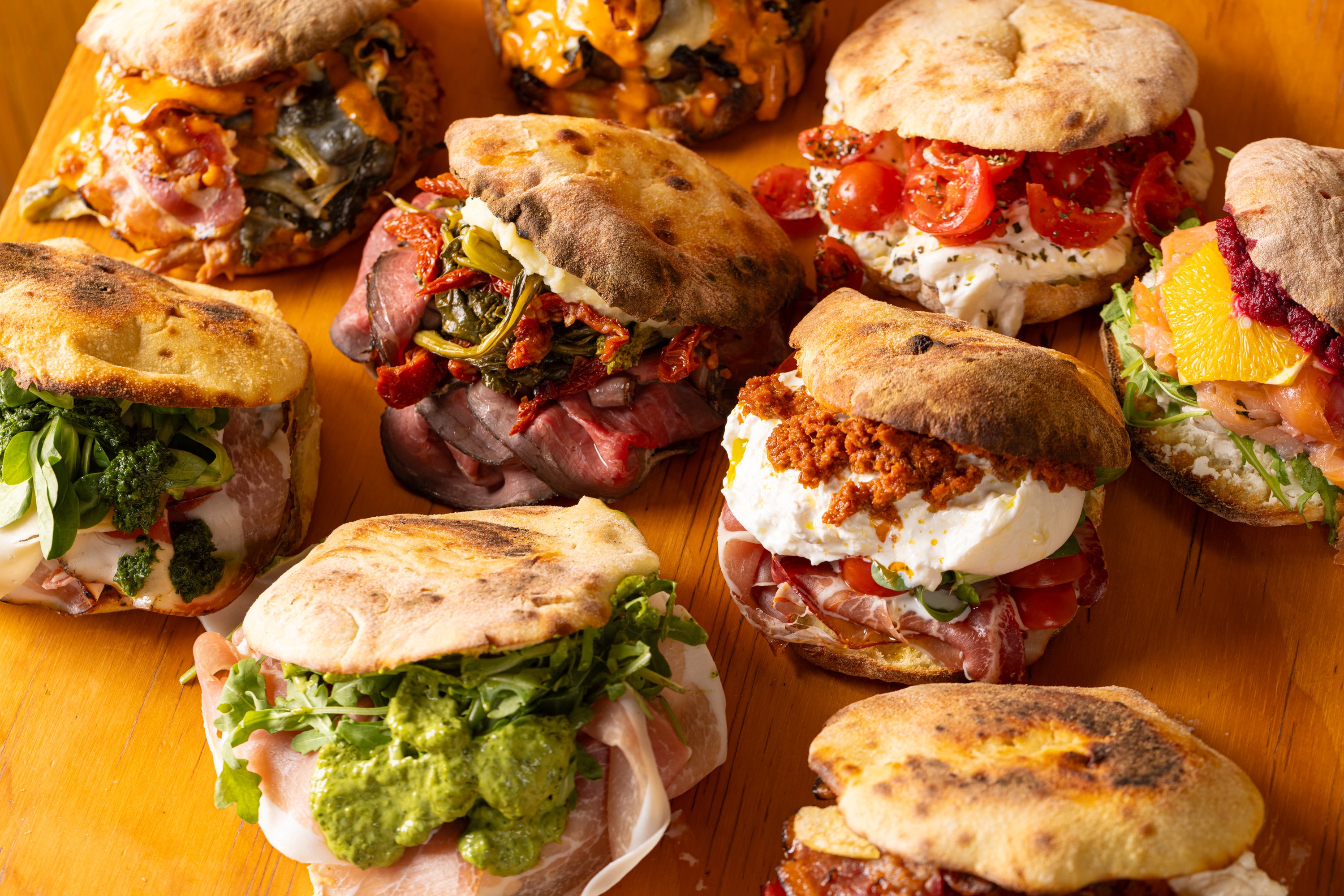 Crudo di Parma, stracciatella pugliese, rucola, maionese al basilico€10.00Pane e pummidoru