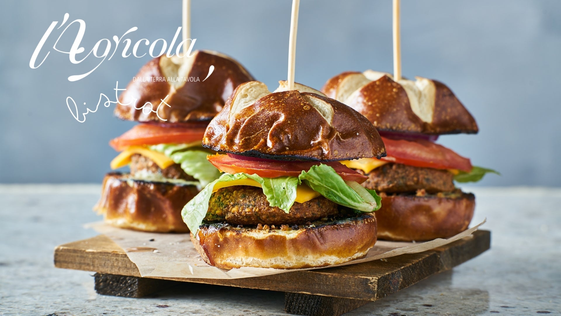 Pane, n°2 burger di scottona, uovo all'occhio di bue, bacon croccante, cacio filante del nostro caseificio, salsa burger, cipolla caramellata, pomodori, lattuga,€18.00AGRIBURGER