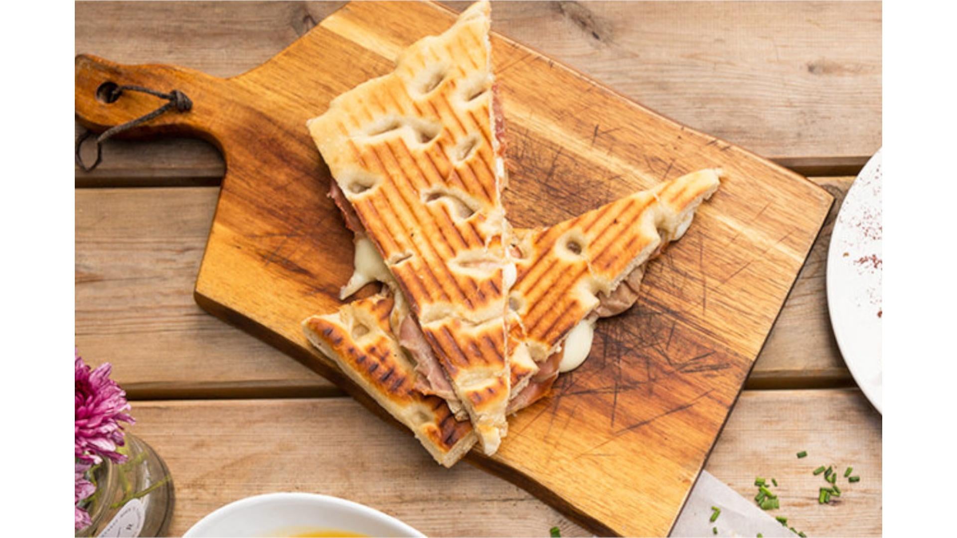 Pomodoro, olive, origano€4.00Focaccia Bianca Farcita - mortadella