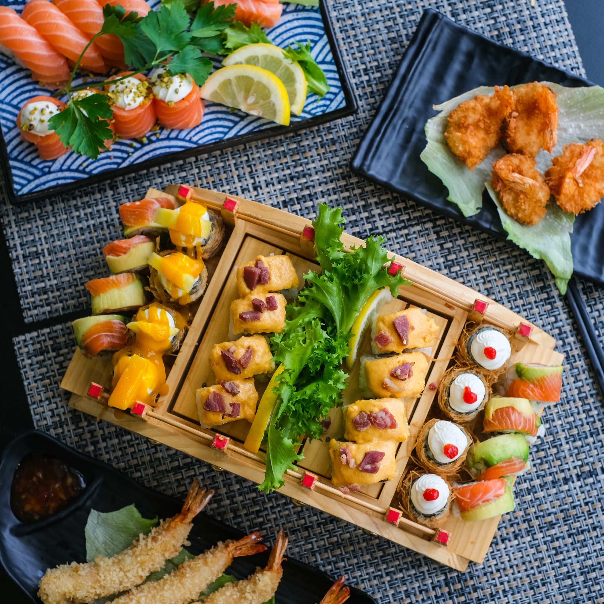 SAKÈ HOSO 6 PezziURAMAKI EBITEN 8 PezziURAMAKI SALMONE AVOCADO SESAMO 4 PezziHOSO FRITTO 6 PezziNIGIRI SAKÈ FLAME 3 PezziNIGIRI SALMONE GRIGLIATO 2 Pezzi€20.00PopularMAXI URAMAKI BOX - 40PZ