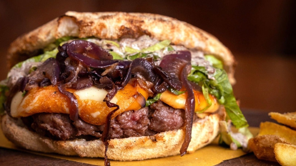 €15.50Bbq king – burger, cheddar, bacon, cipolla grigliata e bbq. Patatine incluse!