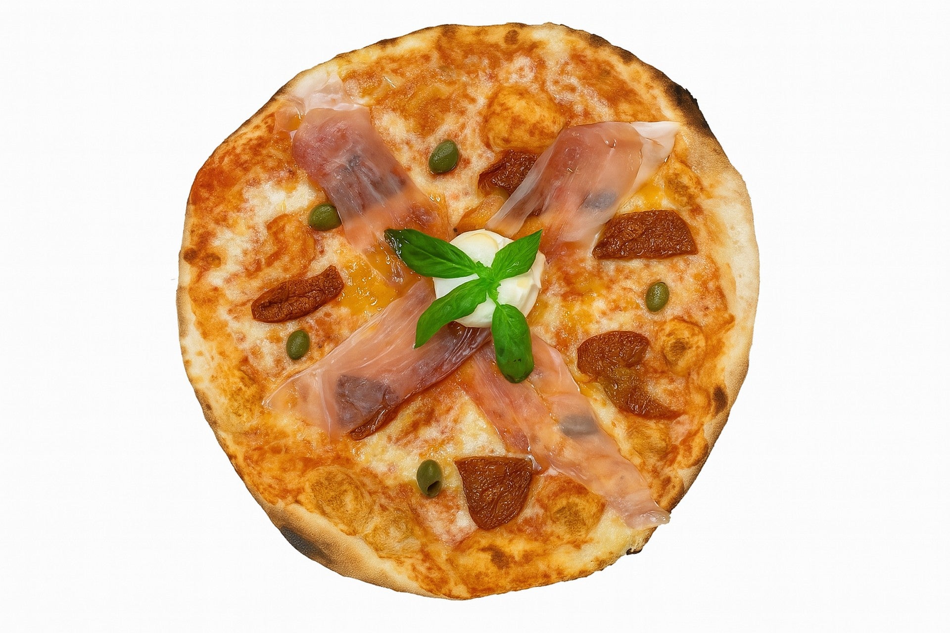Prosciutto crudo, olive taggiasche, burrata e pomodori secchi€23.20Infuocata in teglia