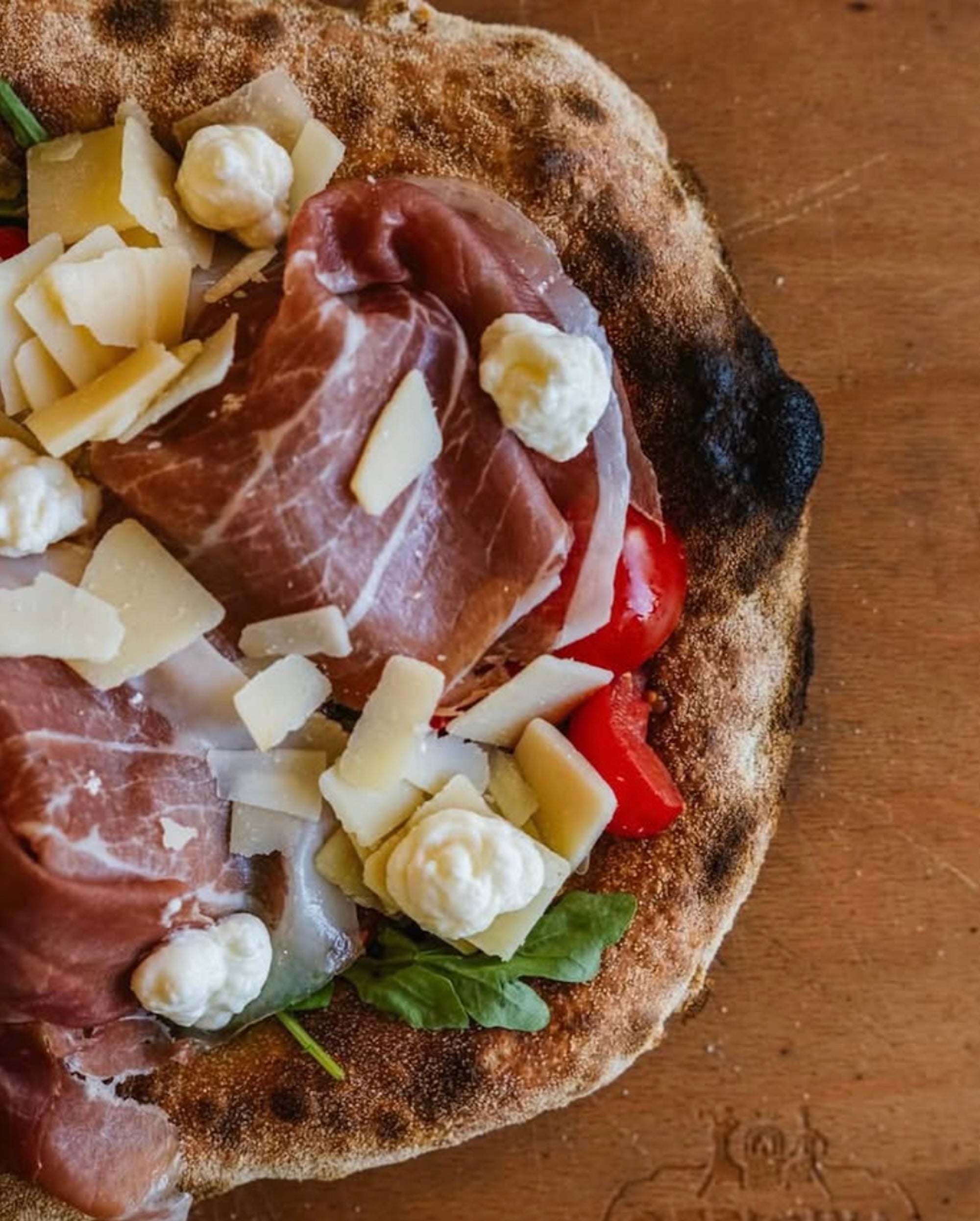 Mozzarella fiordilatte, salsiccia, friarielli, pomodoro ciliegino fuori cottura e mozzarella di bufala fuori cottura€12.00PopularOfficina