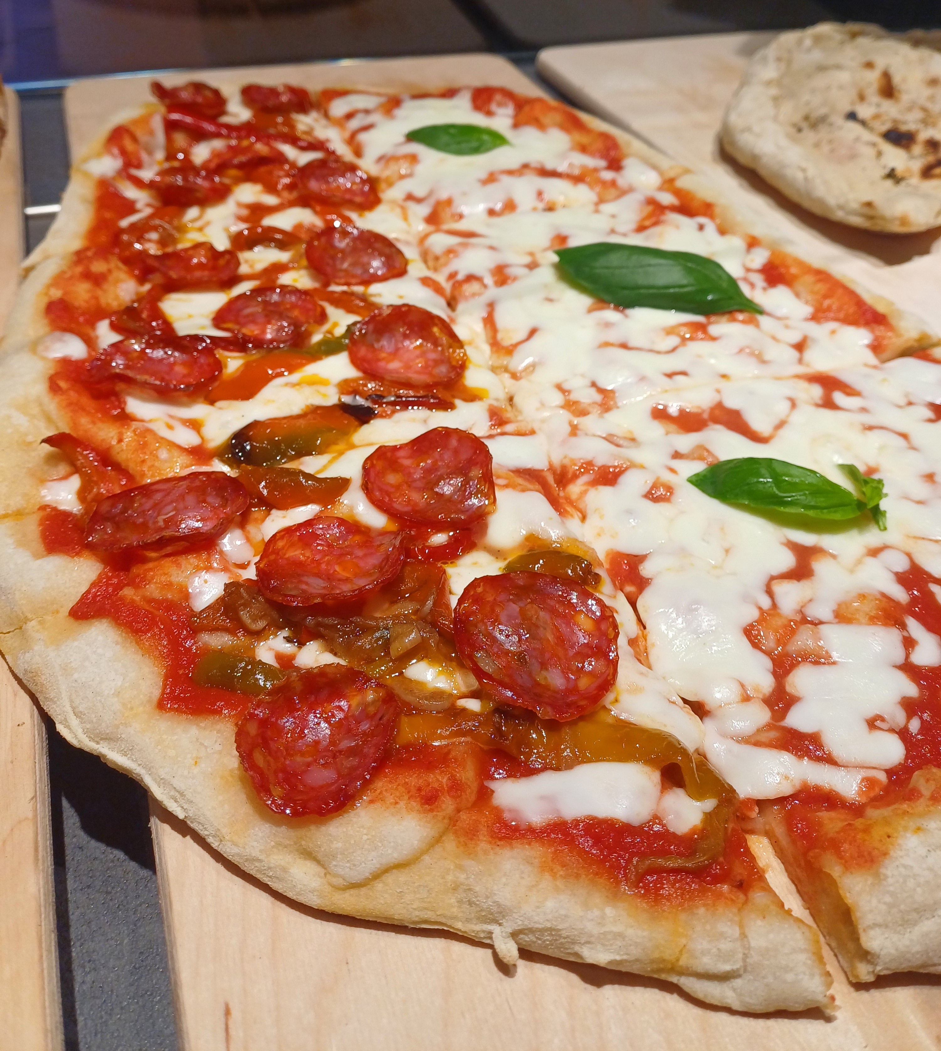 Mozzarella, brie, pancetta arrotolata, pomodorini dopo cottura€13.50Leggera