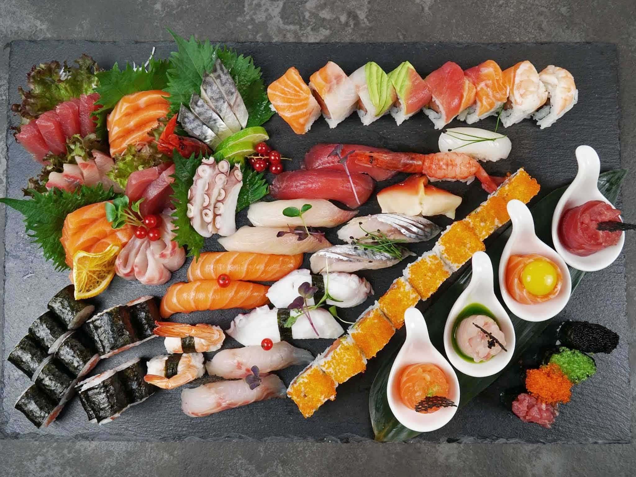 18 sashimi, 18 nigiri, 12 hosomaki, 16 uramaki, 4 gunkan, 4 bigné e 4 crispy truffle€88.00