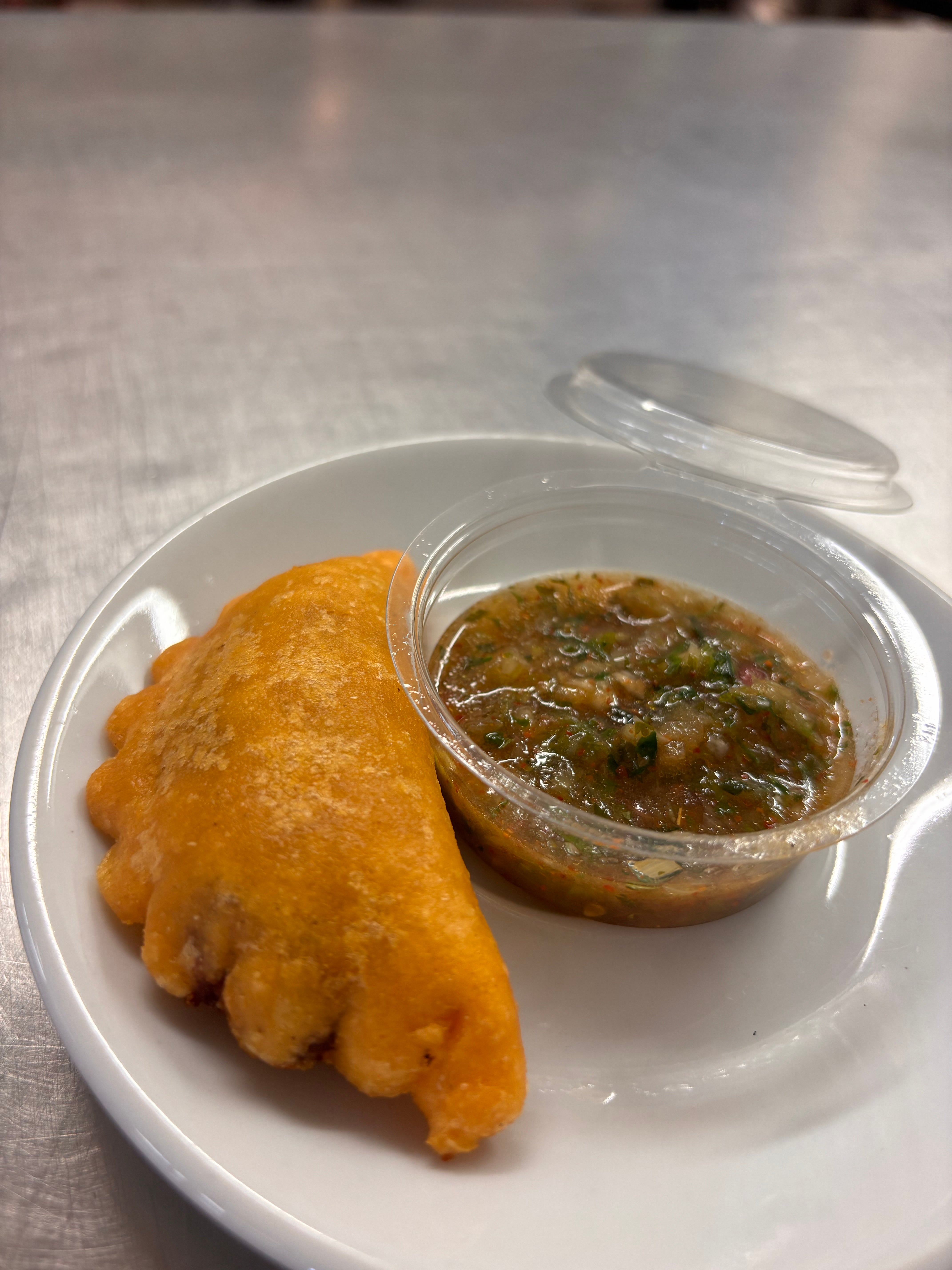 Panino di mais farcito con : carne di manzo sfilacciato, platano maturo ,fagioli e mozzarella10,00 €Arepa Paisa