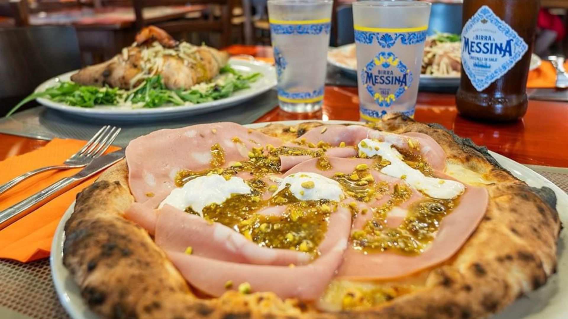 Mozzarella fior di latte, pesto di pistacchio, stracciatella, mortadella13,00 €