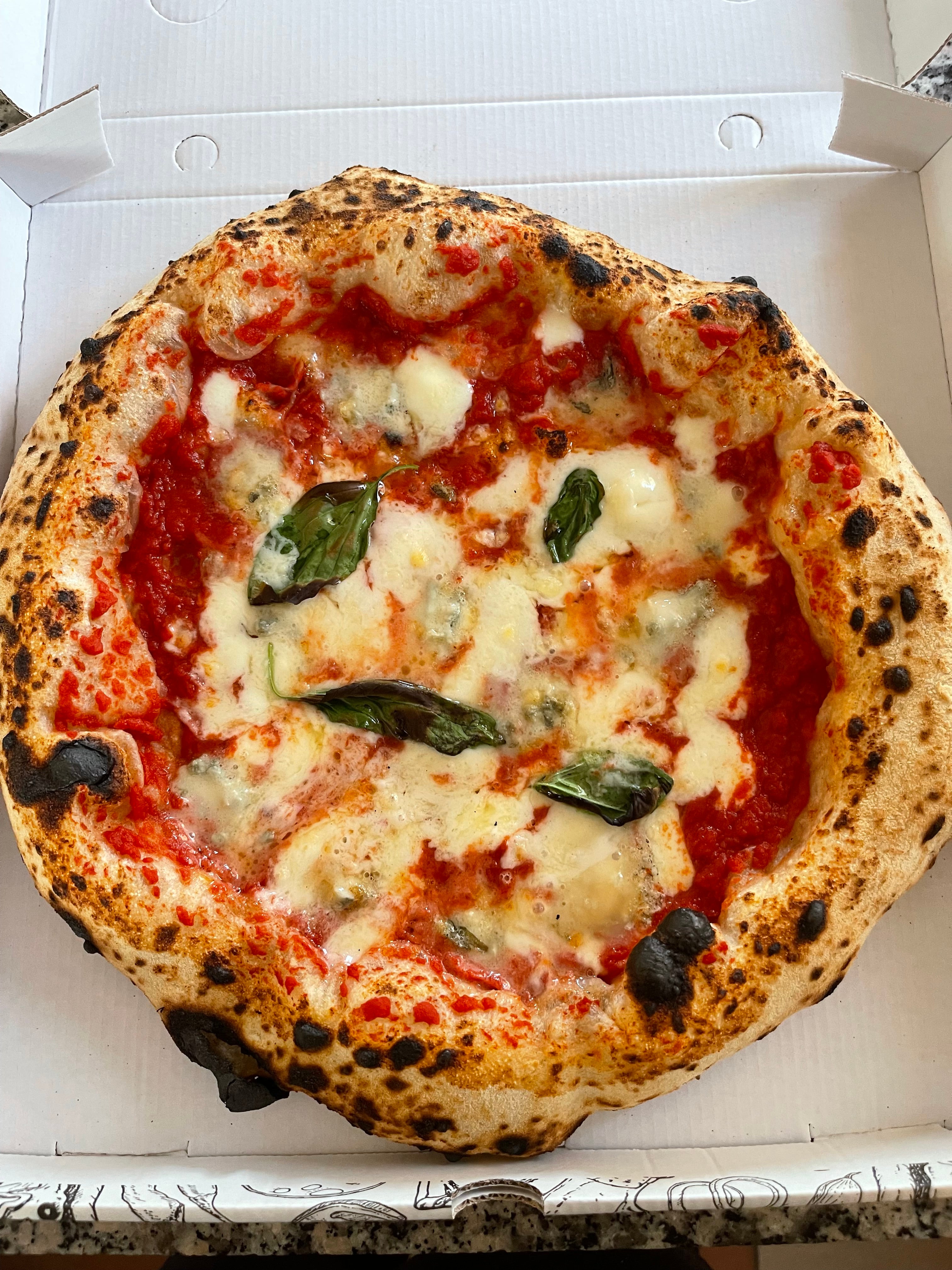 Base pesto di basilico, mozzarella, pomodorini e bordo ripieno di ricotta.10,00 €Margherita provola e pepe
