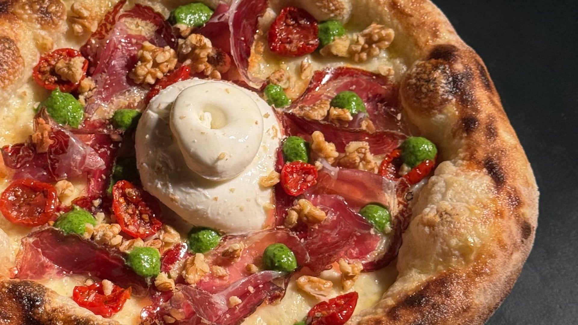 Fiordilatte, gorgonzola, speck, pecorino stagionato, granella di noci, miele al bergamotto12,90 €Pistacchiosa