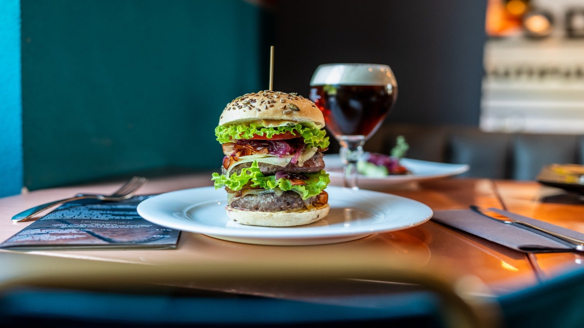 Pane al burro e semi, hamburger fatto in casa (spinaci, uova, parmigiano, farina, cornakes, pangrattato), Raschera, cipolla di Tropea caramellata, pomodoro, lattuga, salsa remoulade (capperi, prezzemolo, maionese, cetrioli sotto aceto, aceto di mele)15,50 €
