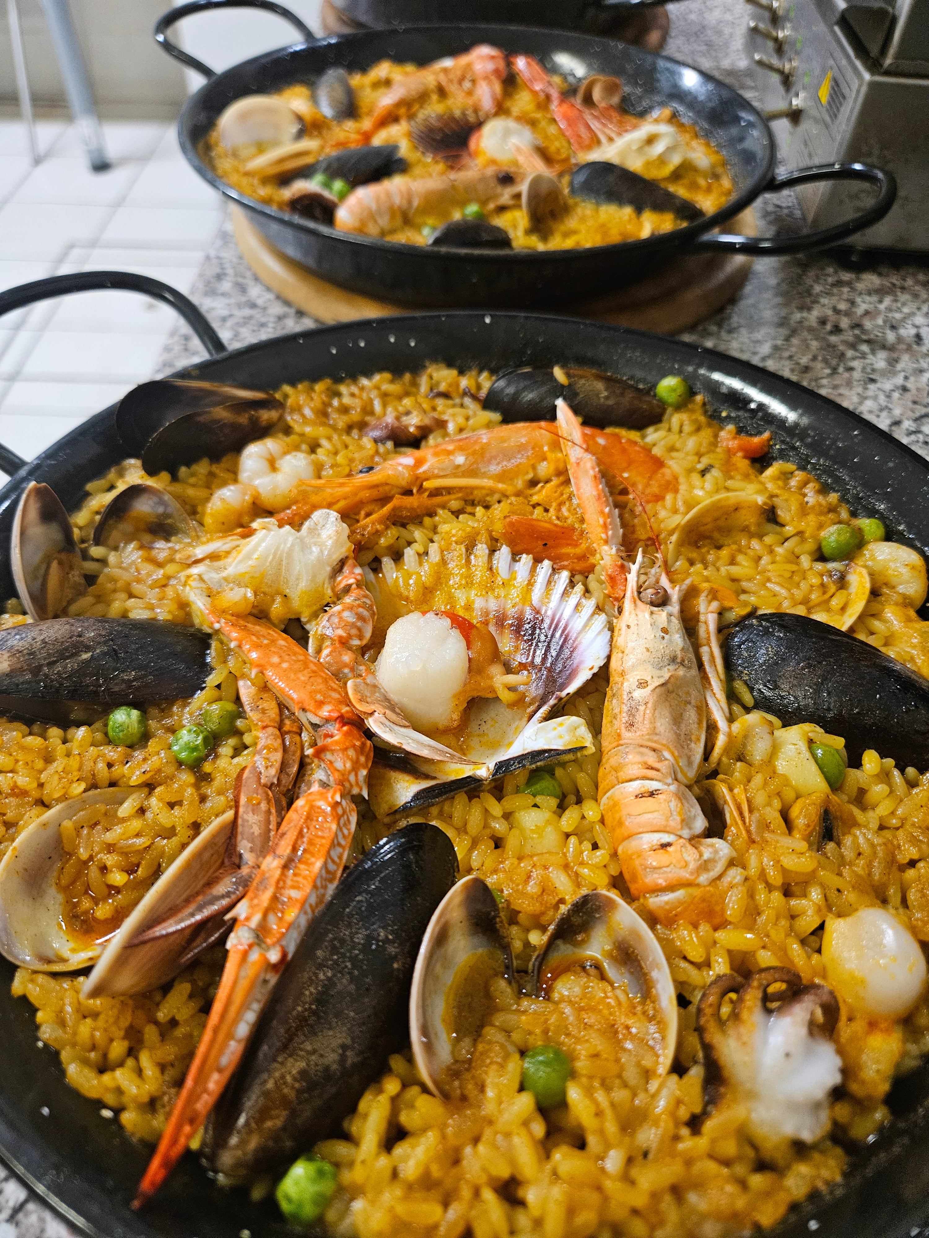Capasanta, gamberone, scampo, granchio, , cozze, vongole, gamberetti,polipetto, calamaro, piselli,peperoni26,00 €Paella con gamberoni e scampi giganti