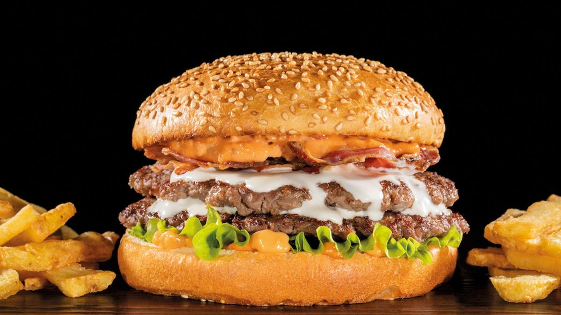 Ottime recensioni· Panino con semi di sesamo*, hamburger*, formaggio fuso con Cheddar, bacon, pomodoro, insalata iceberg e salsa Ketchup, servito con patate* Fries e salsa OWW13,90 €Toro Seduto Double