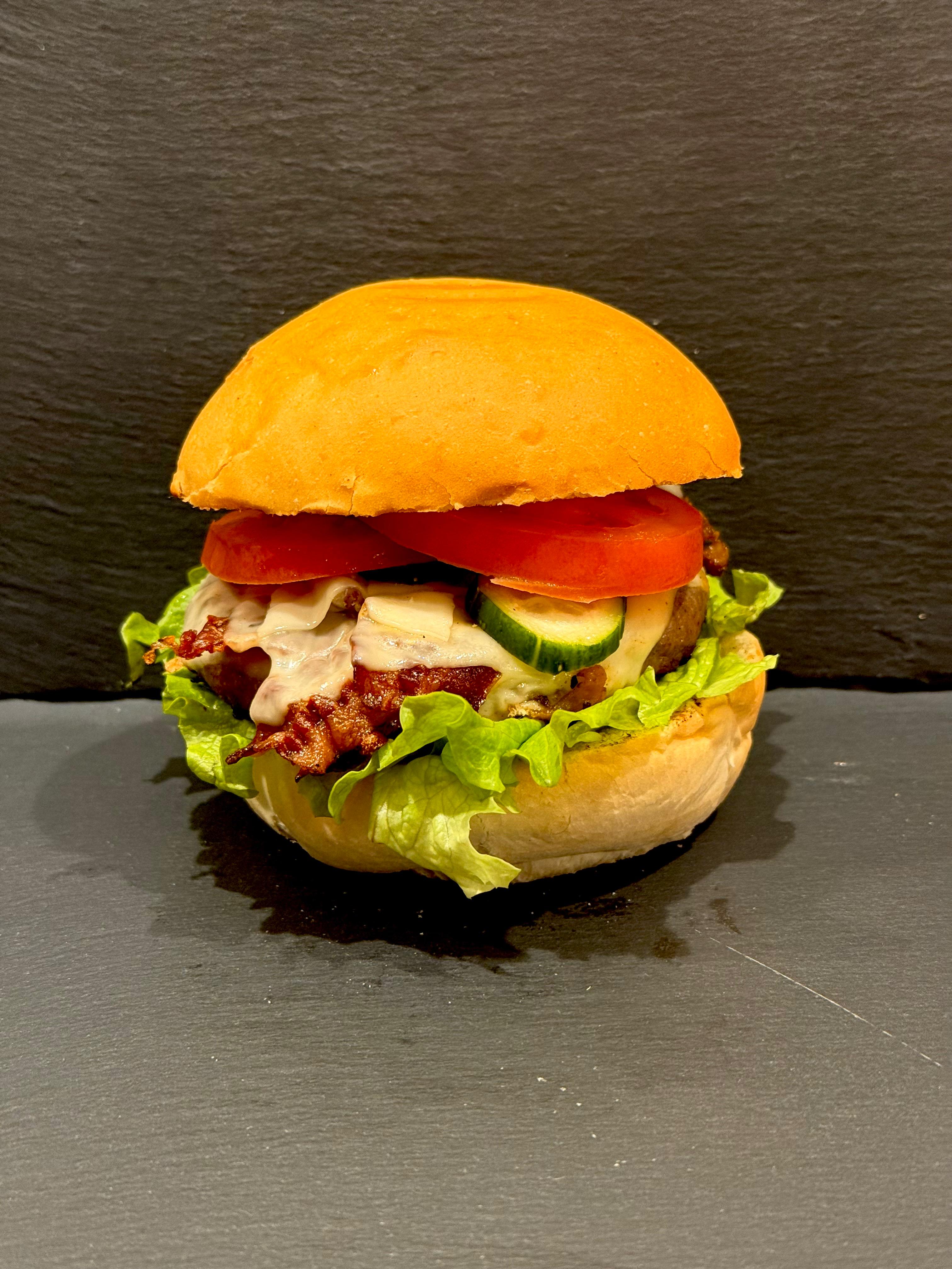 180g di bovino, uovo all'occhio di bue con spolverata di pepe, pancetta croccante e scaglie di grana11,00 €Hamburger Burghetto
