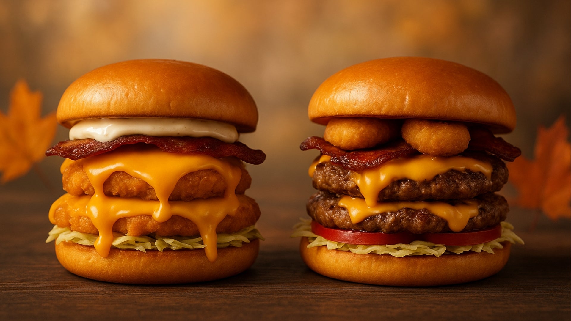 Due hamburger di pollo dorati e succosi con lattuga croccante, bacon caramellato, cheddar fuso e la nostra Cream Mayo, il tutto in un morbido potato bun dorato. Gusto pieno, equilibrato e irresistibile.13,90 €