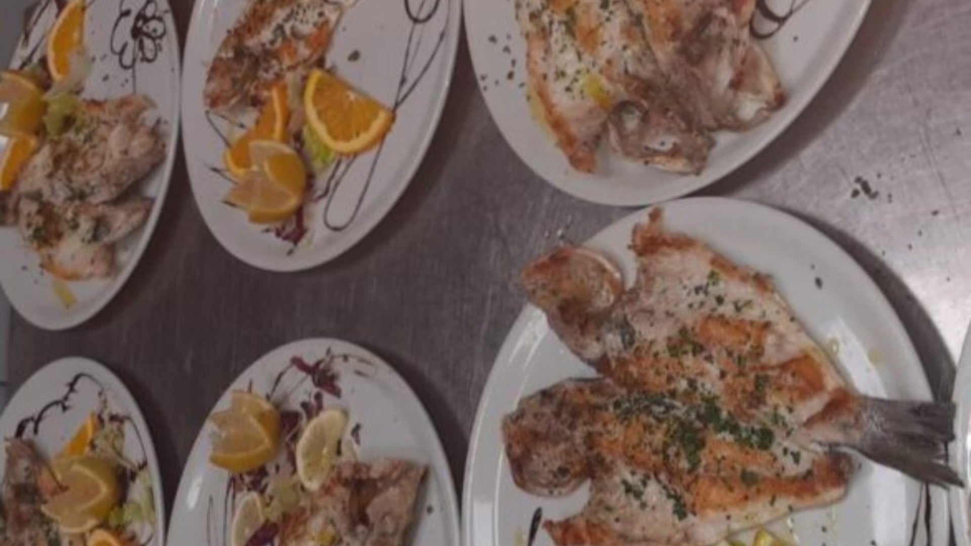 Tagliata di branzino, olive e pomodorini freschi16,00 €Spaghetti al cartoccio Friends
