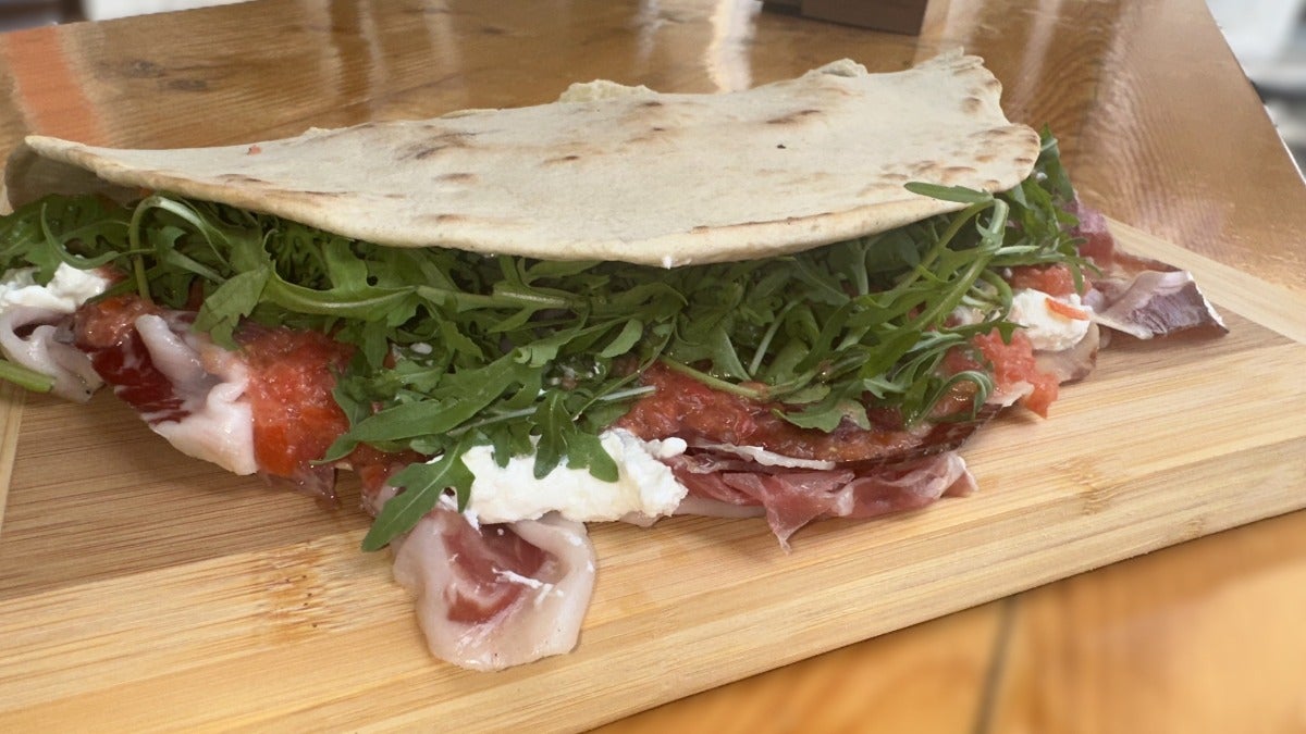 Coppa piacentina, provola dolce senza lattosio, glassa di aceto balsamico, insalata9,50 €Pianella