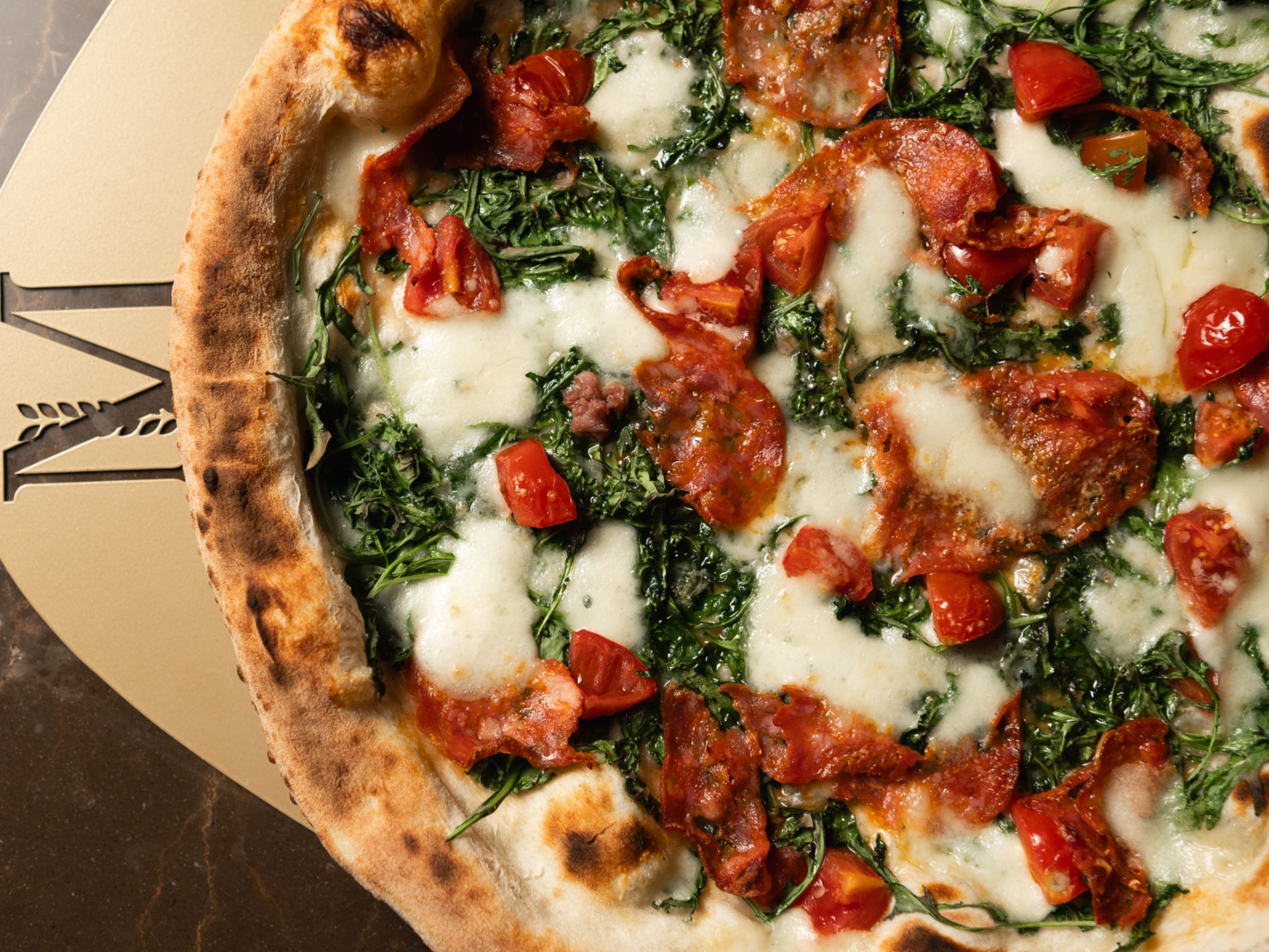 Pomodorini ciliegino freschi, fiordilatte filiera italiana, spianata calabra piccante, rucola in cottura, parmigiano reggiano, olio all'aglio9,50 €In onore di carminuccio