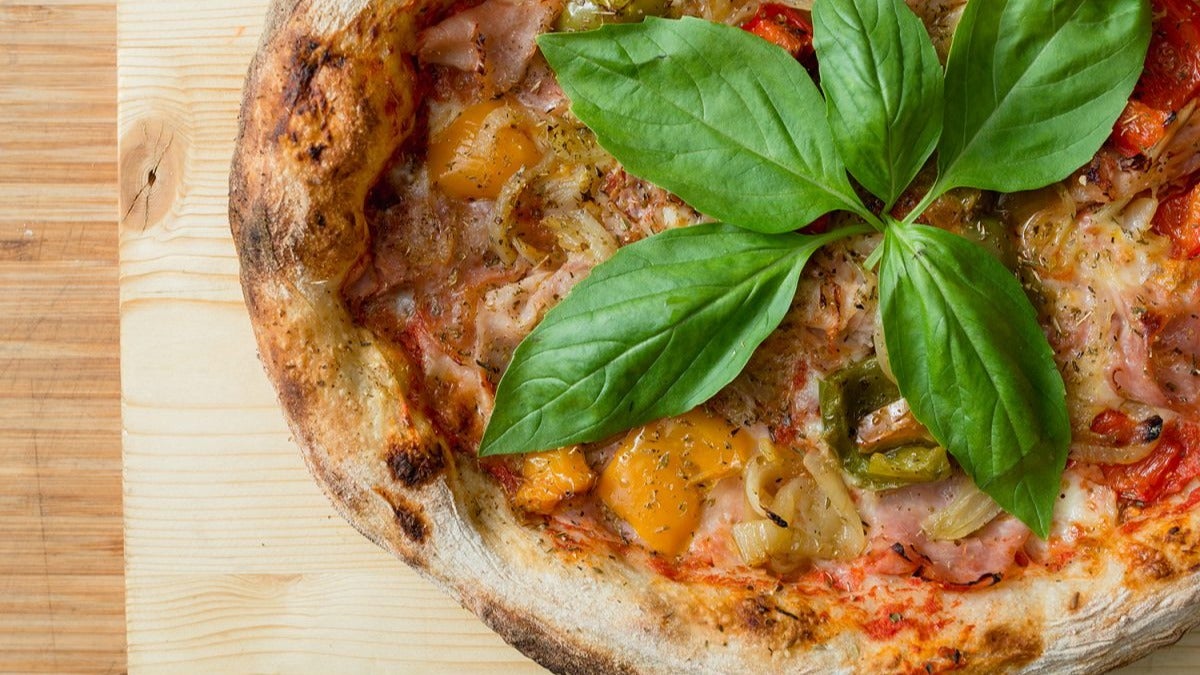Pomodoro, mozzarella, cotto, funghi trifolati, carciofi alla villanella, olive verdi