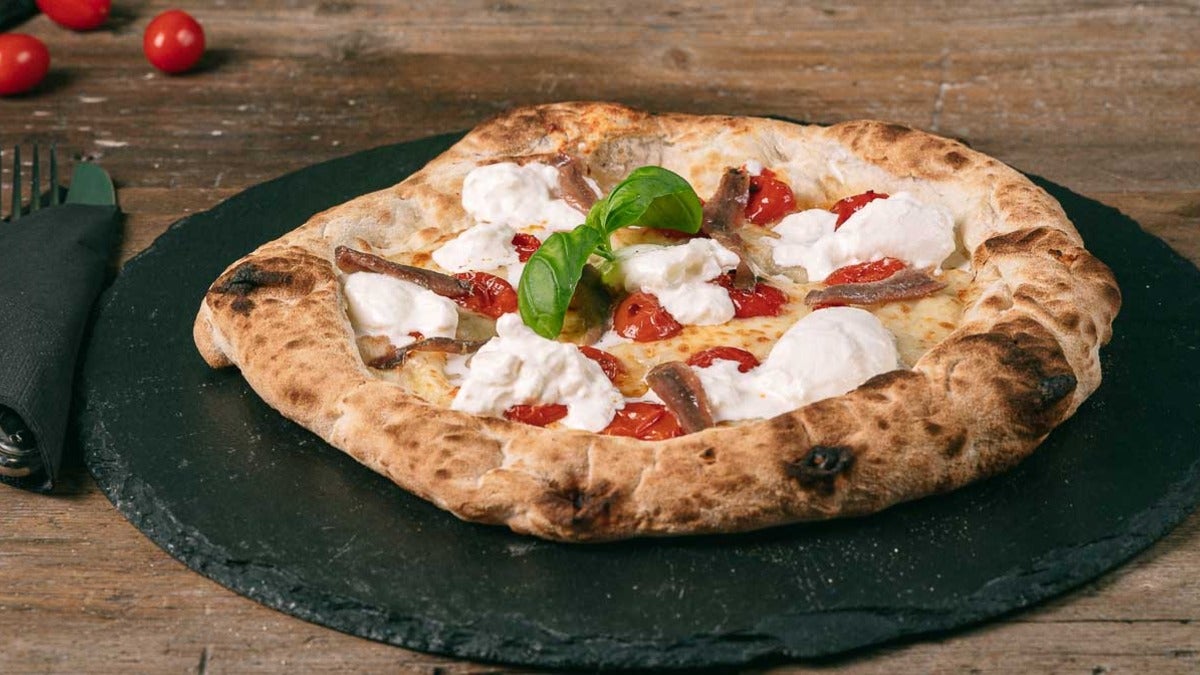Impasto Napoli, cremoso di zucca, fior di latte, burrata fumè, speck dopo cottura16,90 €Norcia