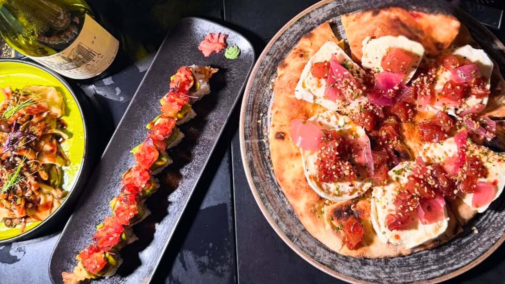 Salmone, philadelphia, cavolo rosso in agrodolce, top di tartare di tonno, e maionese alla rucola, miso e mandorle a fette15,00 €Kasai