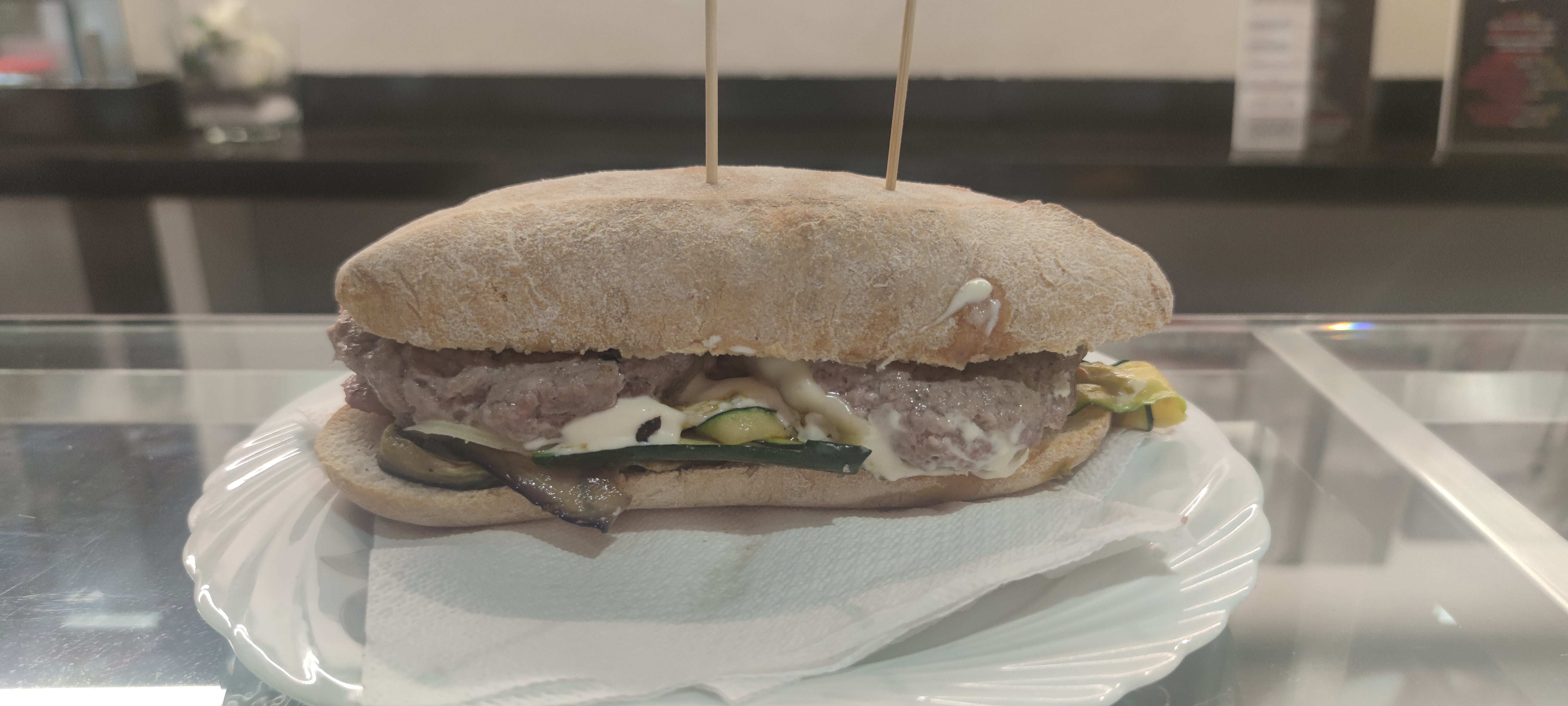 Panino con hamburger vegetariano e verdure6,00 €Panino con porchetta fresca
