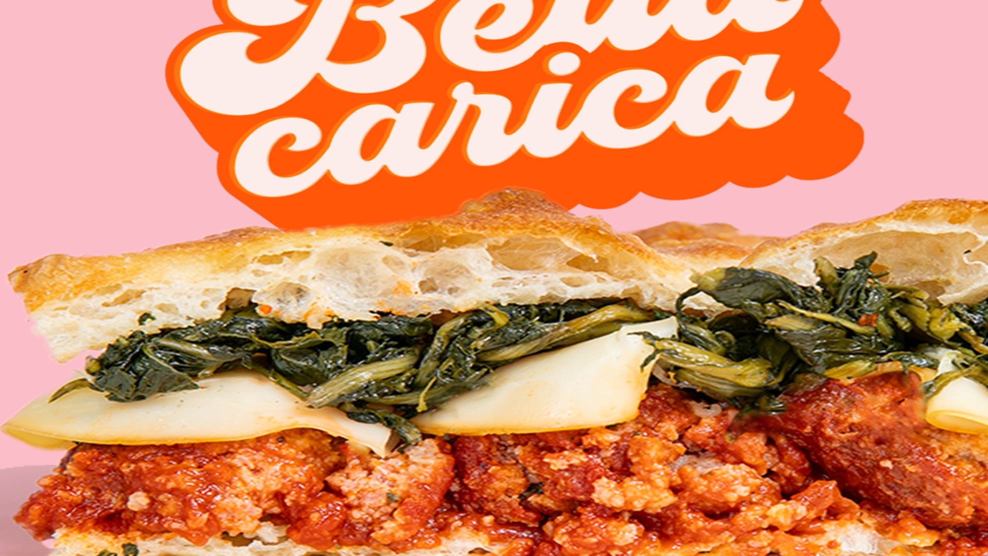 Pizza bianca romana ripiena di polpette al sugo, cicoria ripassata e provola