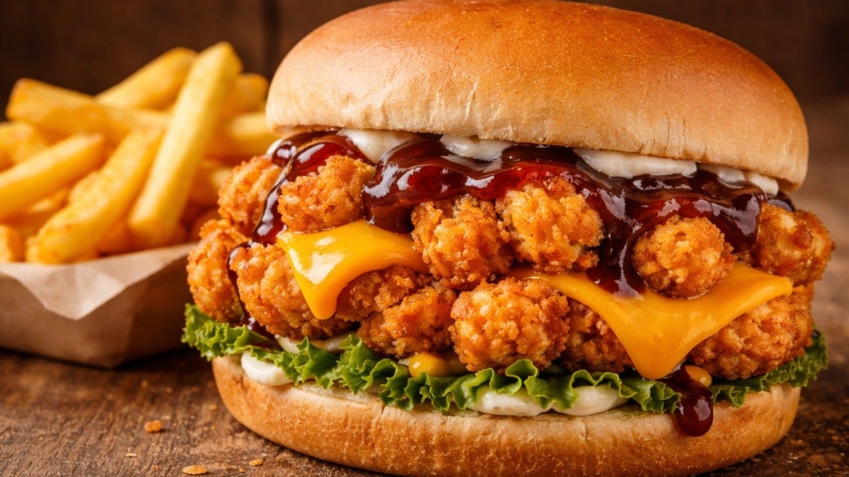 Bun classico con Crunchy chicken, insalata, pomodoro e maionese9,90 €BBQ pop - Crunchy Chicken, cheddar e BBQ