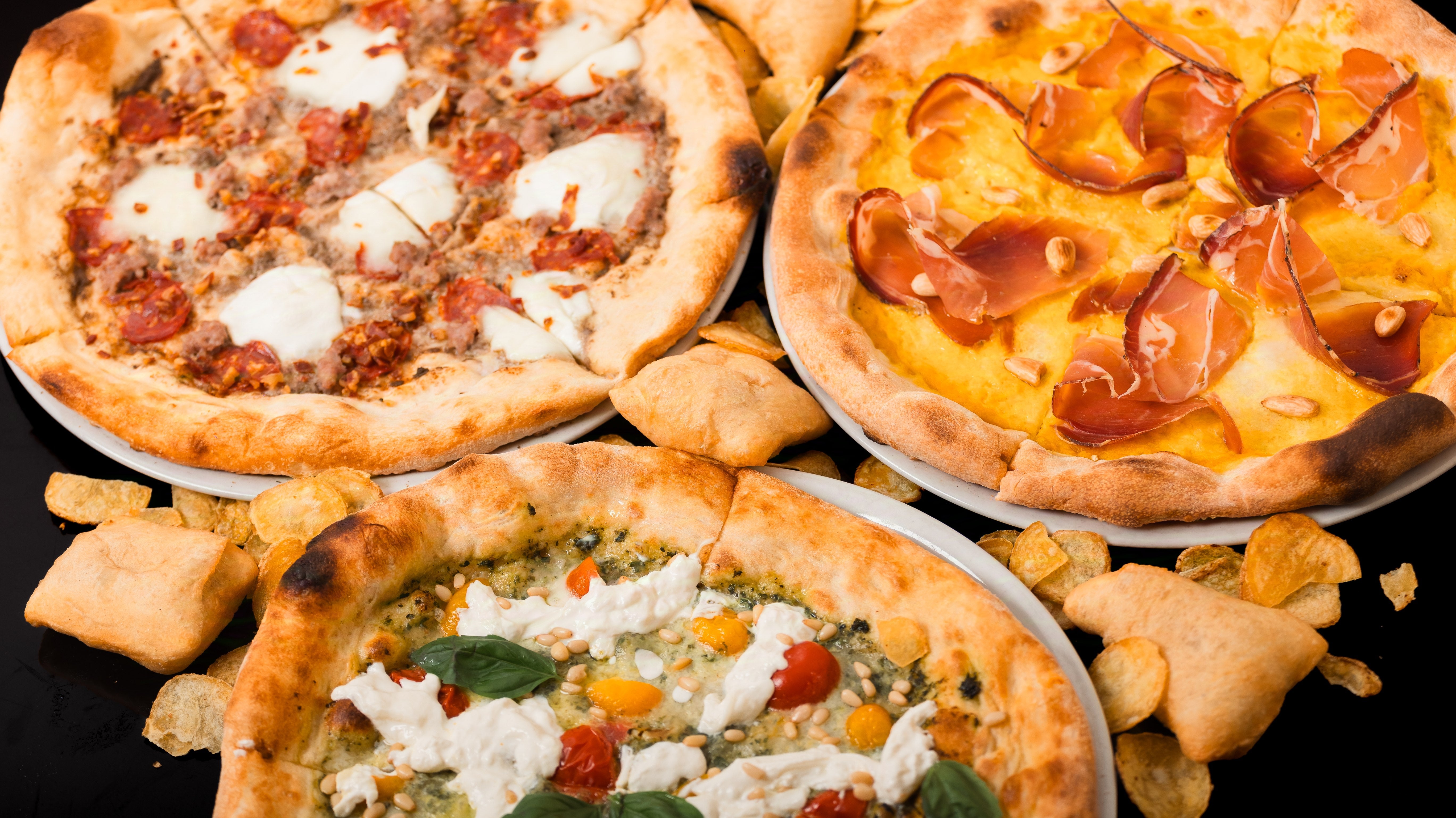 Crema tartufata, salame piccante, pancetta croccante, salsiccia e mozzarella di bufala campana D.O.P.14,00 €“RTB”