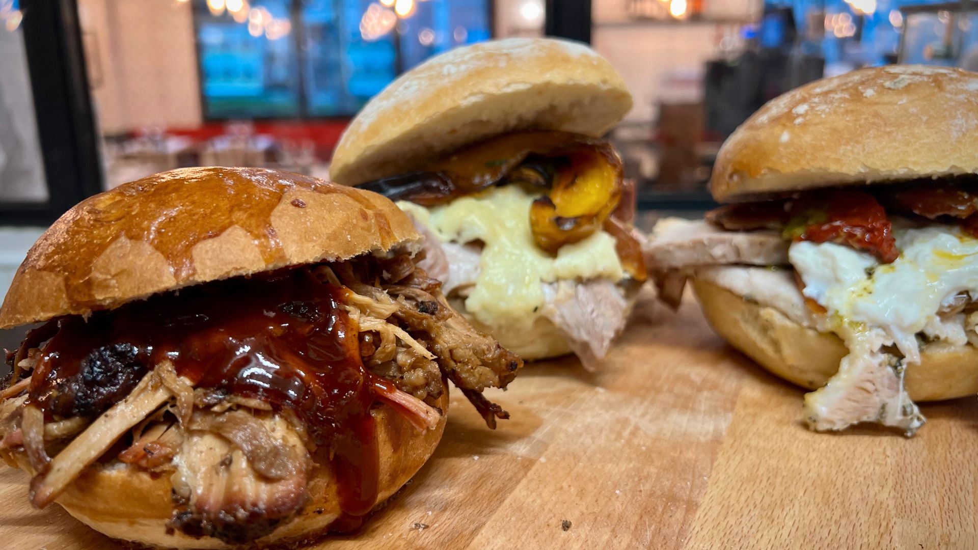 Panino morbido fatto fresco tutti i giorni, 180 grammi di pulled affumicato in casa. Aggiungi salsa BBQ per esaltare gli aromi di affumicatura o assaggialo con la confettura di frutti di bosco per un'esperienza diversa.11,50 €Culetto di Pucci con straccetti di manzo, rucola e primosale di pecora grigliato
