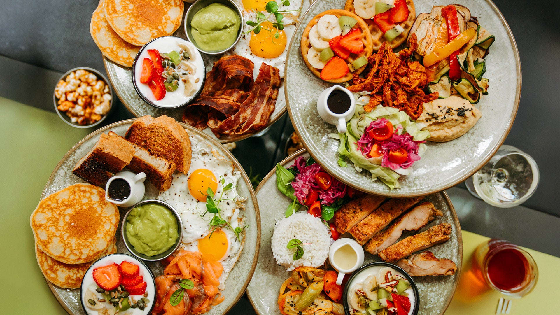 Pancakes con burro di arachidi americano e glassa ai frutti di bosco.8,90 €Essential Duo