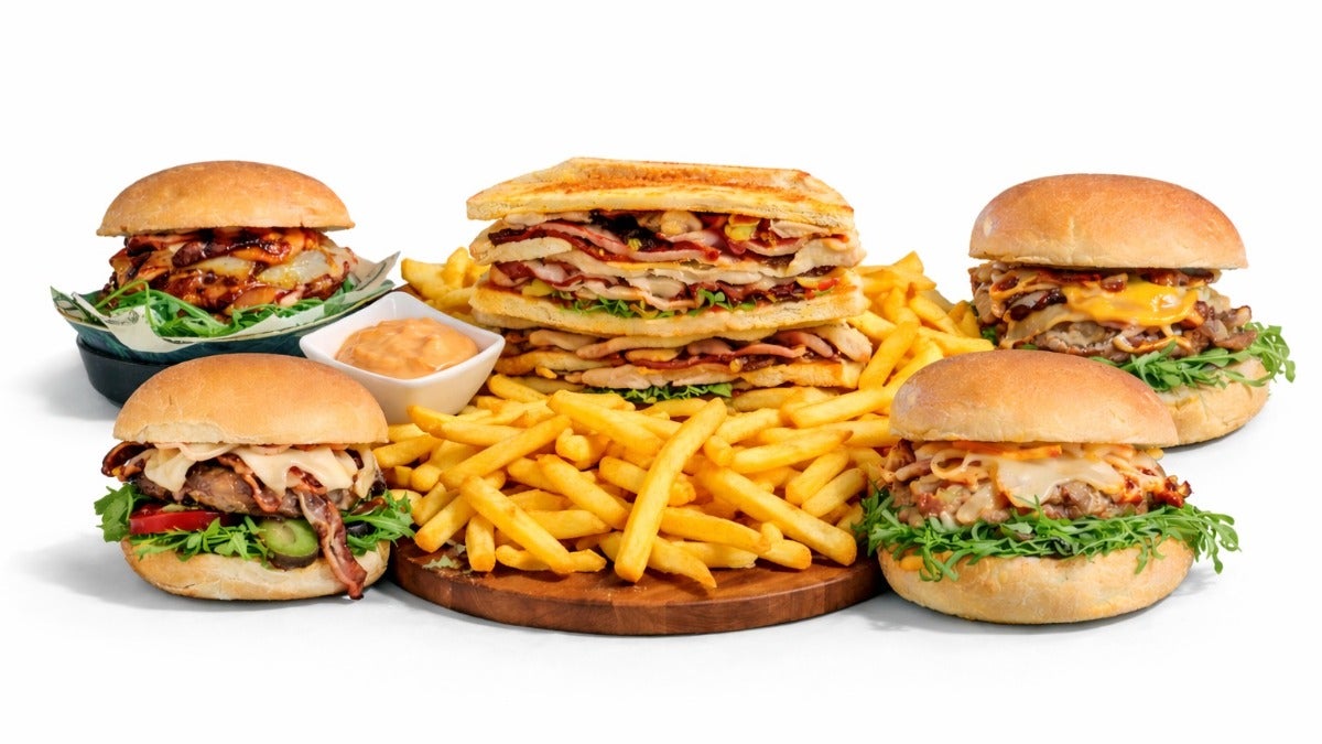 Prosciutto cotto affumicato Praga SGT, pancetta stufata, edamer fuso alla piastra, uova fresche, pomodoro ramato DOP, lattuga IGT e verdure grigliate (melanzane e peperoni), racchiusi nel nostro pane in cassetta integrale. Servito con salsa rosa della casa e patate Frenzy Fries a parte.15,90 €