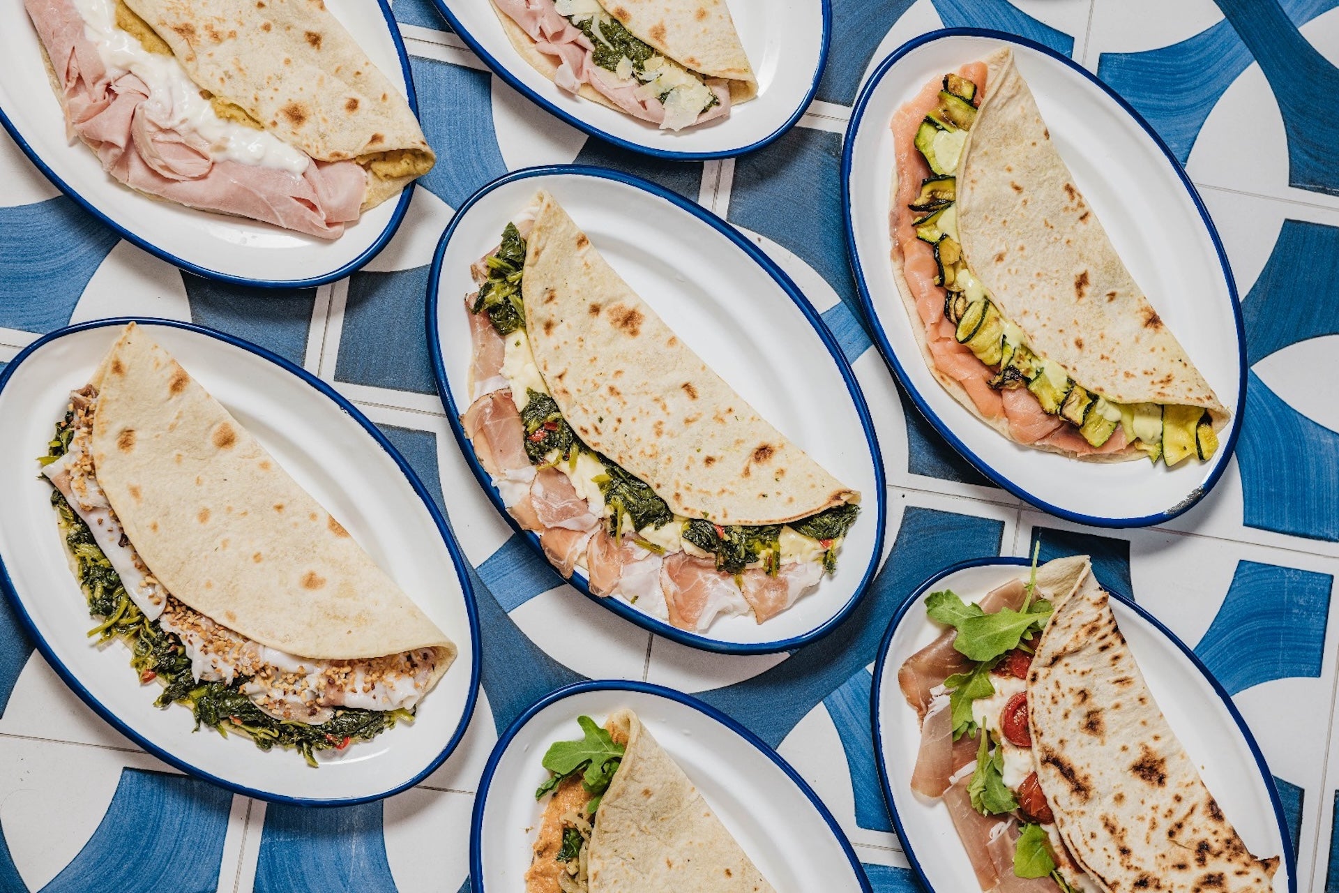 Prosciutto crudo di San Daniele - dop, rucola, squacquerone DOP, pomodorini informati8,70 €Piadina cotto, stracchino e patate