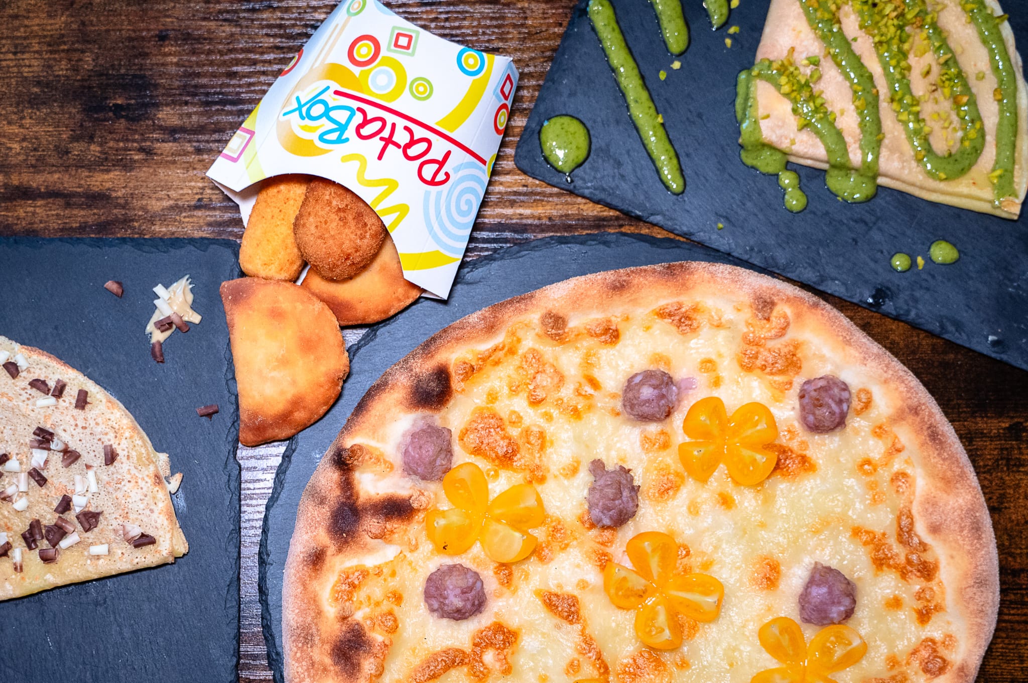 4 pezzi crocchette di pollo, 4 pezzi di crocchette di patate, 4 panzerotti pomodoro e mozzarella€10.00