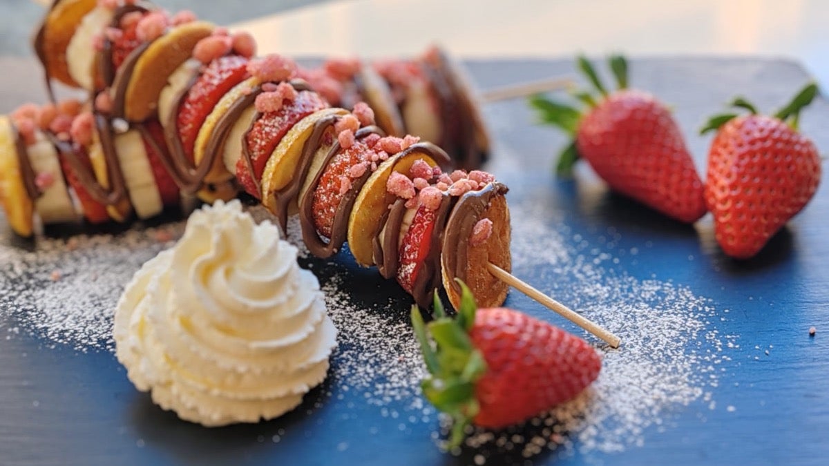 2 spiedini con mini crepe olandesi, kiwi freschi, banana, nutella e crumble.€7.00Popular