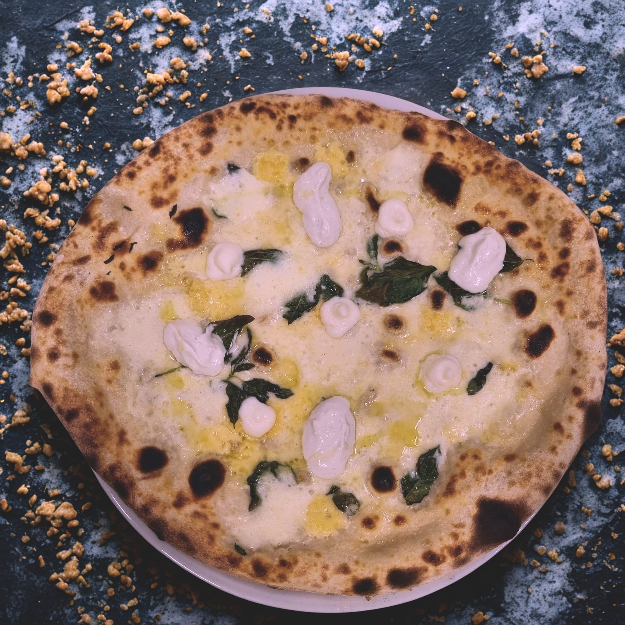 Mozzarella, salsiccia fresca, patate cbt, all'uscita uovo marinato al limone e pecorino romano etichetta nera