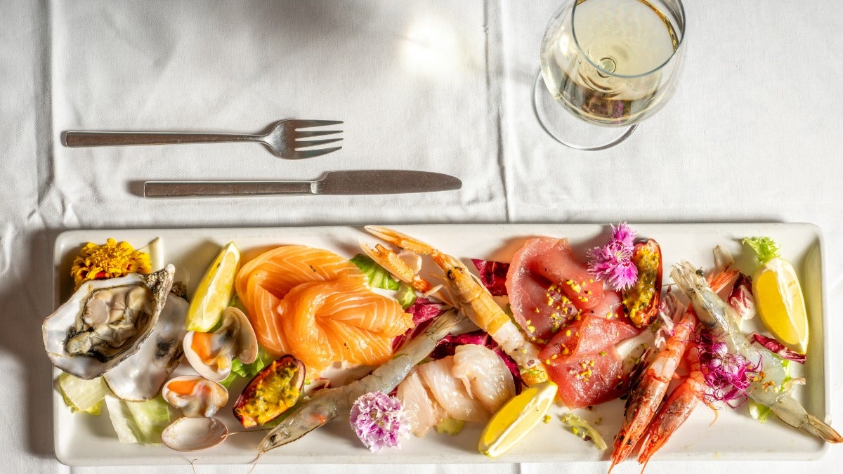 Ostriche fin de claire,gamberetti del mare ligure, scampi,tonno,salmone,cannocchie,cannolicchi,gambero rosso/viola.Può variare in base al pescato.40,00 €Tartare tonno